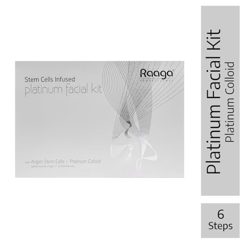 Raaga Professional Stem Cells Infused Platinum 6 Step Facial Kit | Platinum Colloid, Argan Stem Cells | Restores Skin's Moisture | All Skin Types (61 gm)