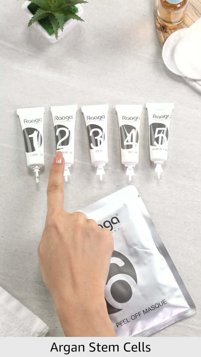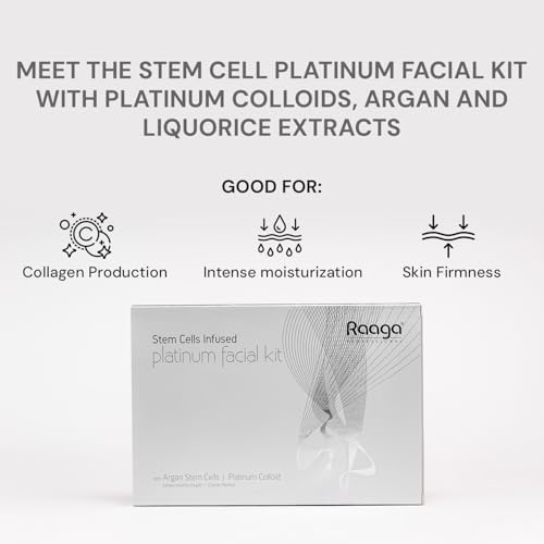 Raaga Professional Stem Cells Infused Platinum 6 Step Facial Kit | Platinum Colloid Argan Stem Cells | Restores Skin's Moisture | All Skin Types (61 gm)