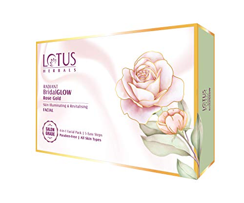 Lotus Herbals Radiant BridalGLOW Rose Gold Skin Illuminating Facial Kit | 5 Easy Steps | Paraben Free | Salon Grade | All Skin Types | Pack of 4 | 228g
