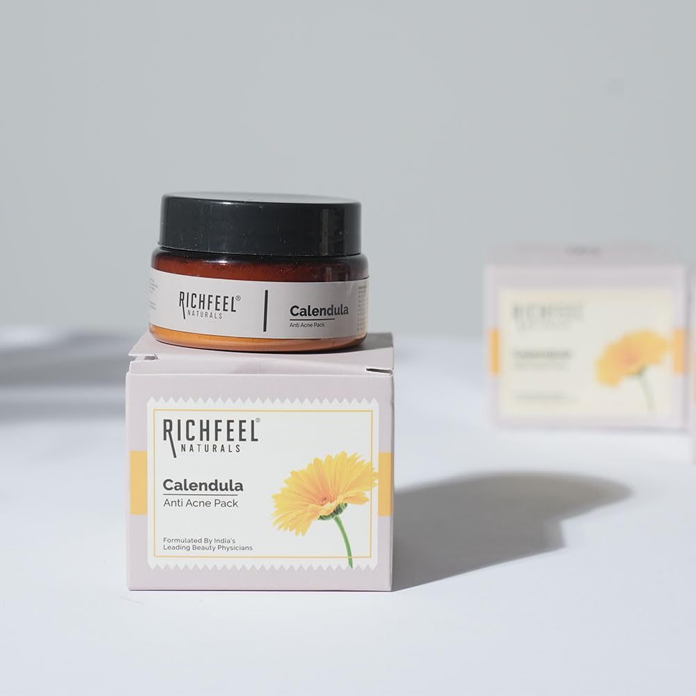Calendula Anti Acne Pack: Target stubborn acne with our Calendula Anti Acne Pack. This specially formulated mask combines the anti-inflammatory properties of Calendula with other potent ingredients to combat acne-causing bacteria reduce redness and promot
