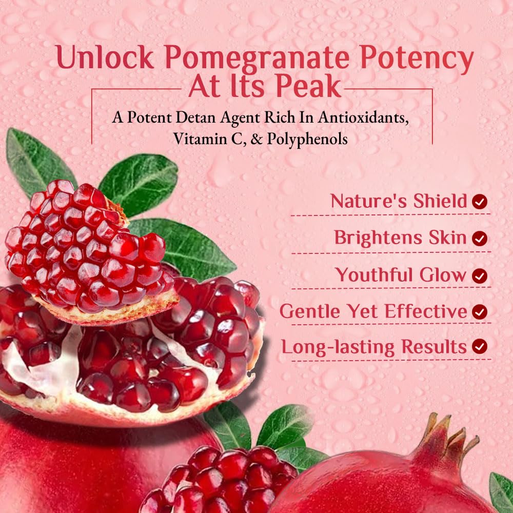 Pomegranate also has anti-properties. Pomegranate does a whole lot of good to all kind of skin problems age spots wrinkles acne hyperpigmentation etc. Pomegranate firms up skin by aiding in collagen production. It is also believed pomegranates brighten and lighten skin tone