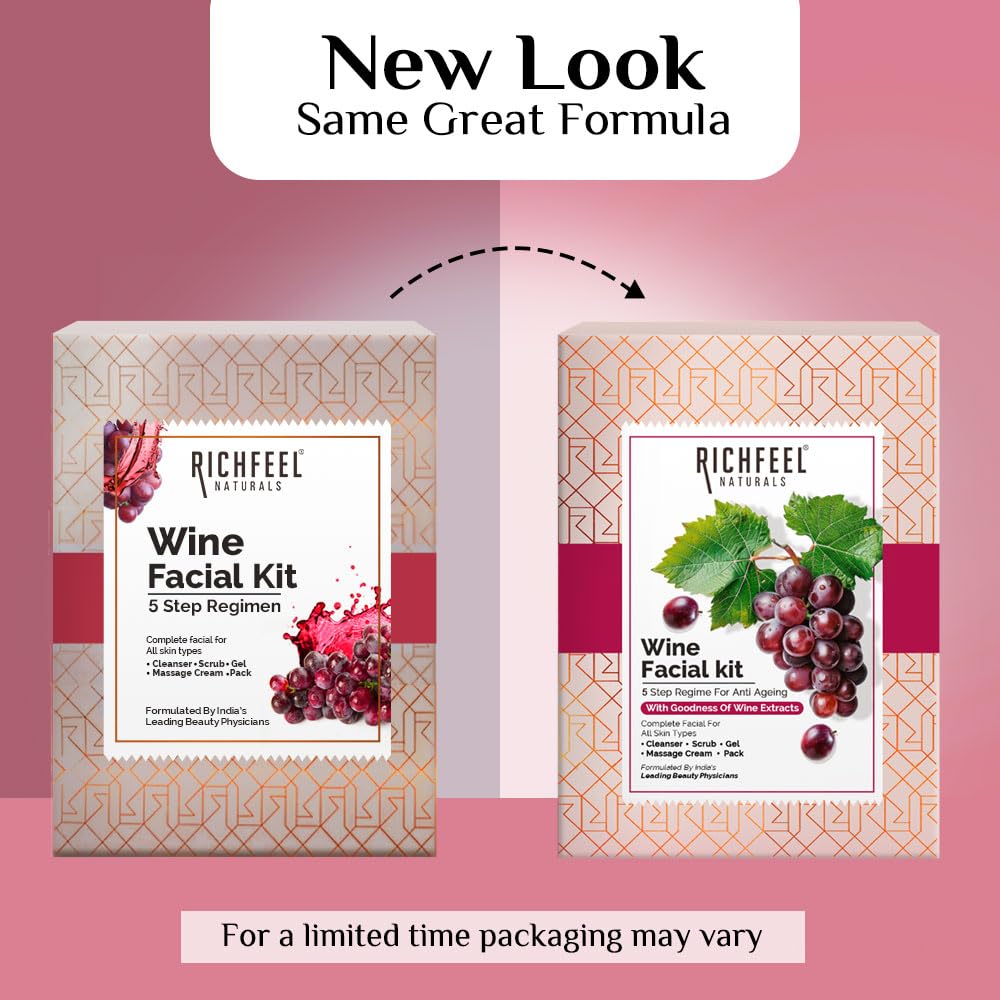 Richfeel Wine Facial Kit for Glowing Skin Removes Wrinkle Dark Spots Reduces & Hyperpigmentation | 250 g