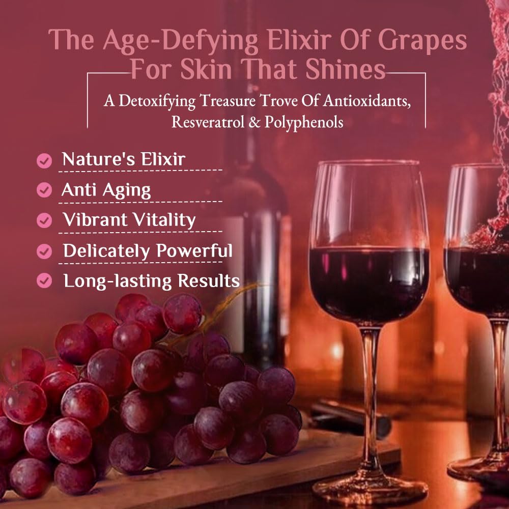 Antioxidant Protection: Wine contains antioxidants such as resveratrol which may help protect the skin from damage caused by free radicals. Antioxidants can potentially reduce the signs of ageing and promote a more youthful appearance.