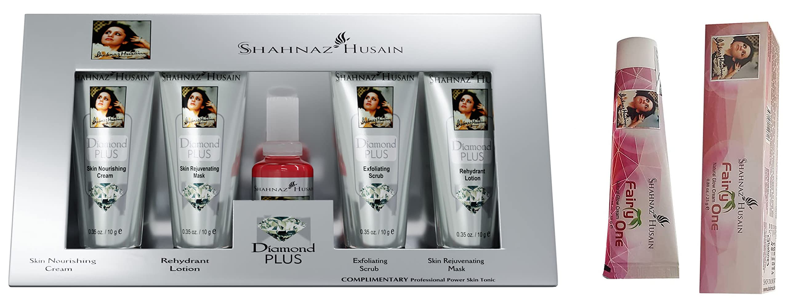 The Diamond Skin Revival Kit is a powerful age-control formula for timeless beauty. Comprising of Diamond Plus Scrub Diamond Plus Nourishing Cream Diamond Plus Mask and Diamond Plus Rehydrant Lotion it purifies the skin. This Diamond Skin Revival Kit regenerates new skin cells and enhances skin beauty. The Diamond Kit ensures a healthy radiant skin. Shahnaz Husain Neem Turmeric Aloevera Germicidal Wash leaves skin fresh soft and bright with a healthy glow. FAIRY ONE Natural Glow Cream is a unique blend of seven natural extracts like Rose Aloe Vera Cucumber Wheat germ oil Bearberry Grape Seed & Saffron. The unique formulation acts on melanin formation prevents pigmentation s moisturizes and nourishes the skin keeping it smooth and supple. It also protects your skin from sunburn leaving it soft young and glowing..