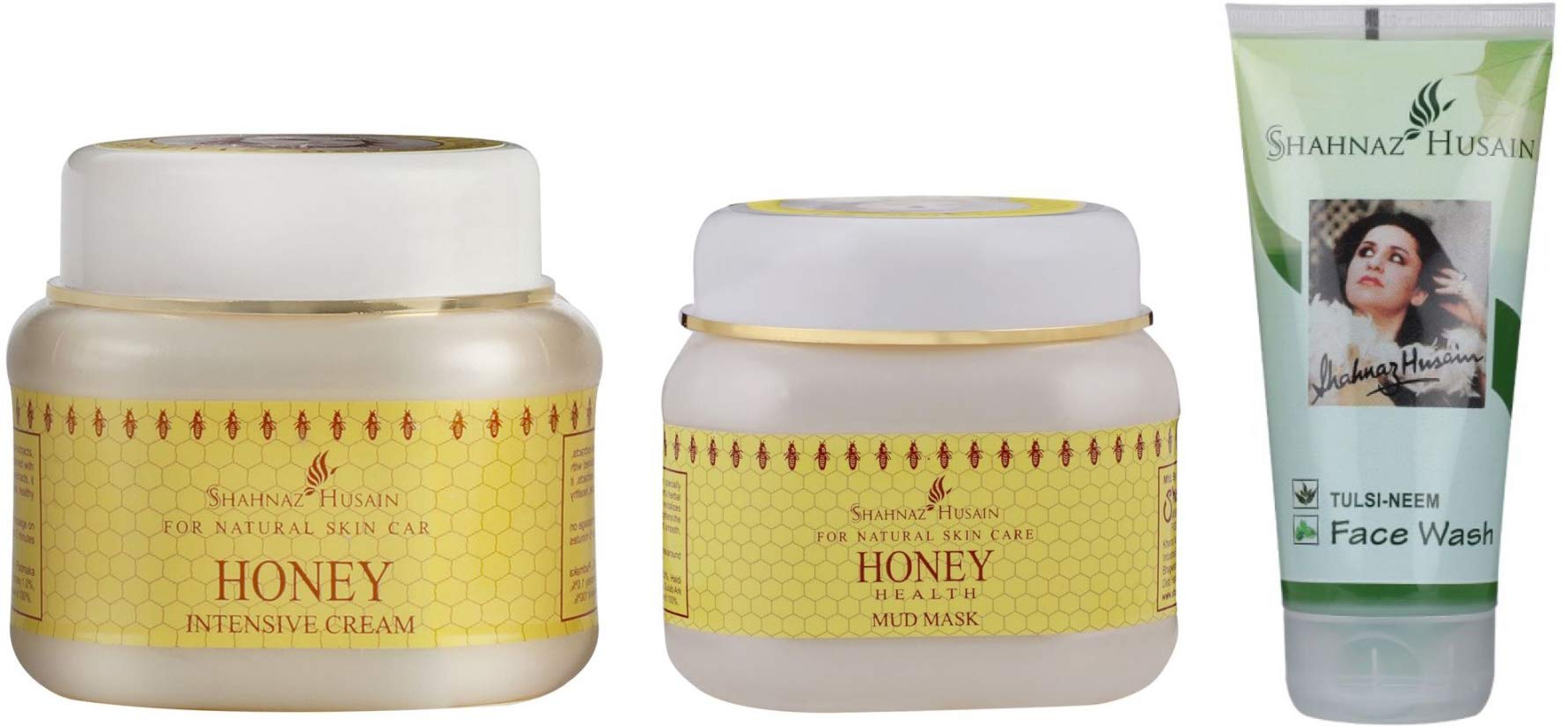 Honey Mud Mask - 100GM: It is specially designed to purify the skin and made ideal balance skin. Honey and the other powerful herbal ingredients help protect nourish and heal the skin. Honey Mud Mask revitalizes dull dry and skin providing suppleness. It tones and tightens the pores reducing blemishes and visible aging signs. It helps to tone and tighten the skin keeping it healthy Moisturizes and nourishes the skin powerfully Maintains the youthful properties of the skin Leaves the skin soft smooth clear healthy and youthful. s blemishes & visible signs of aging. Improves circulation to the skin surface and s a glow It is a setting Mask which dries after application. Honey Cream - 40GM: It acts as a skin-nourishing for dry and skin. The combination of honey and other precious herbs helps to moisturize the skin leaving it petal soft and also gives the skin a long-lasting youthful glow. Honey cream is made by combining honey with other precious herbs It provides nourishment to dull and dry skin. It helps to tone the skin Gives a soft supple healthy and radiant look. This cream is white in color and has a creamy base. Tulsi Neem Face Wash - 50GM: Tulsi Neem Face Wash is a -free Ayurvedic face wash that has been specially designed to cleanse impurities and restore the natural balance. It contains plant extracts of neem lemon peel tulsi and aloe vera juice.