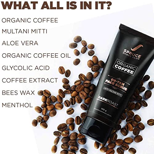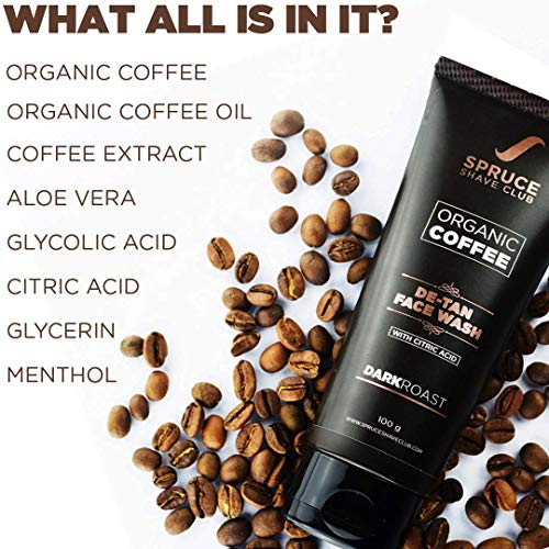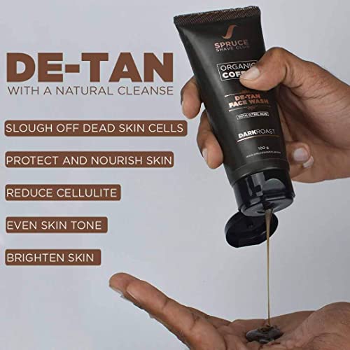 Spruce Shave Club De Tan Facial Kit For Men with Organic Coffee & Glycolic Acid for Tan Removal & Brighter Skin