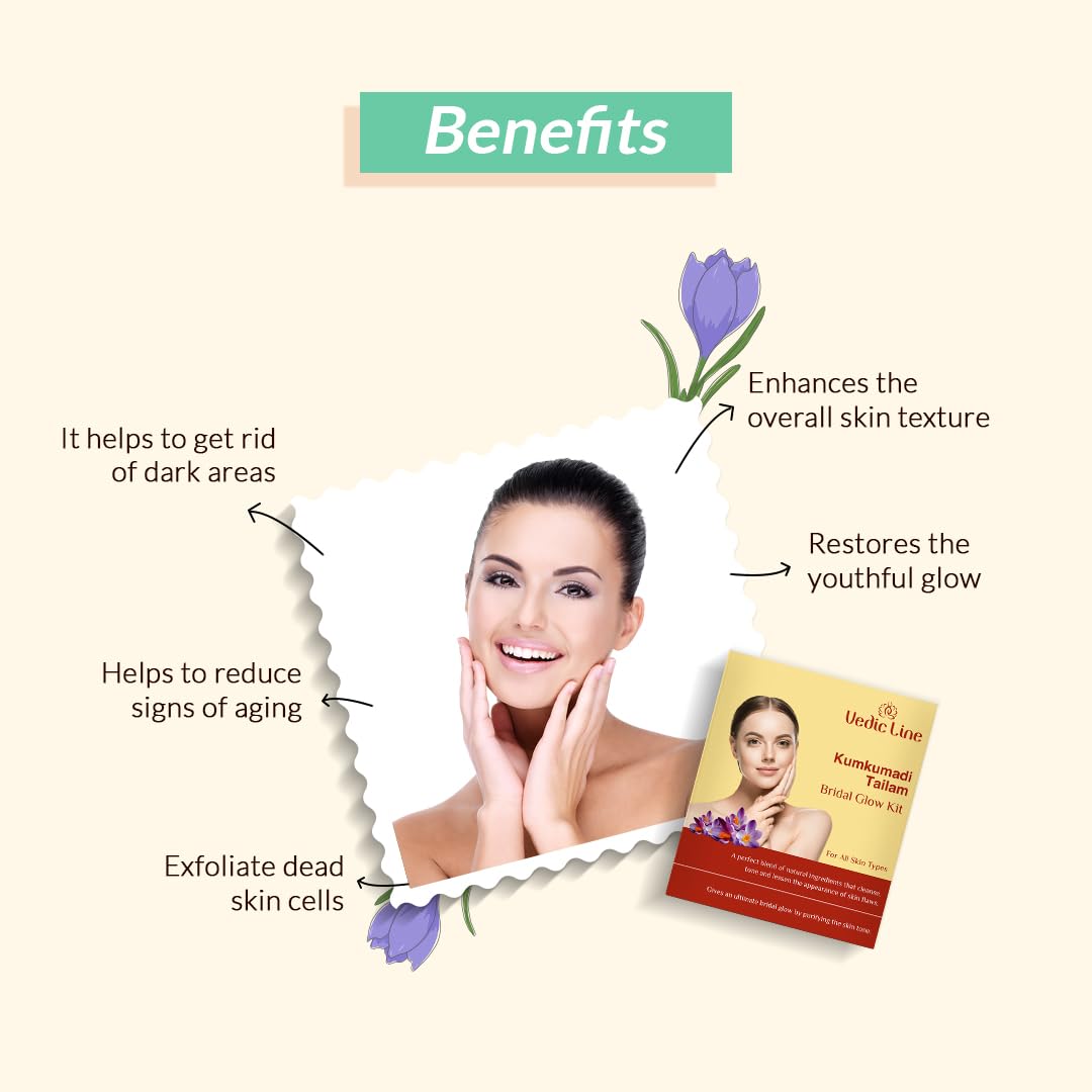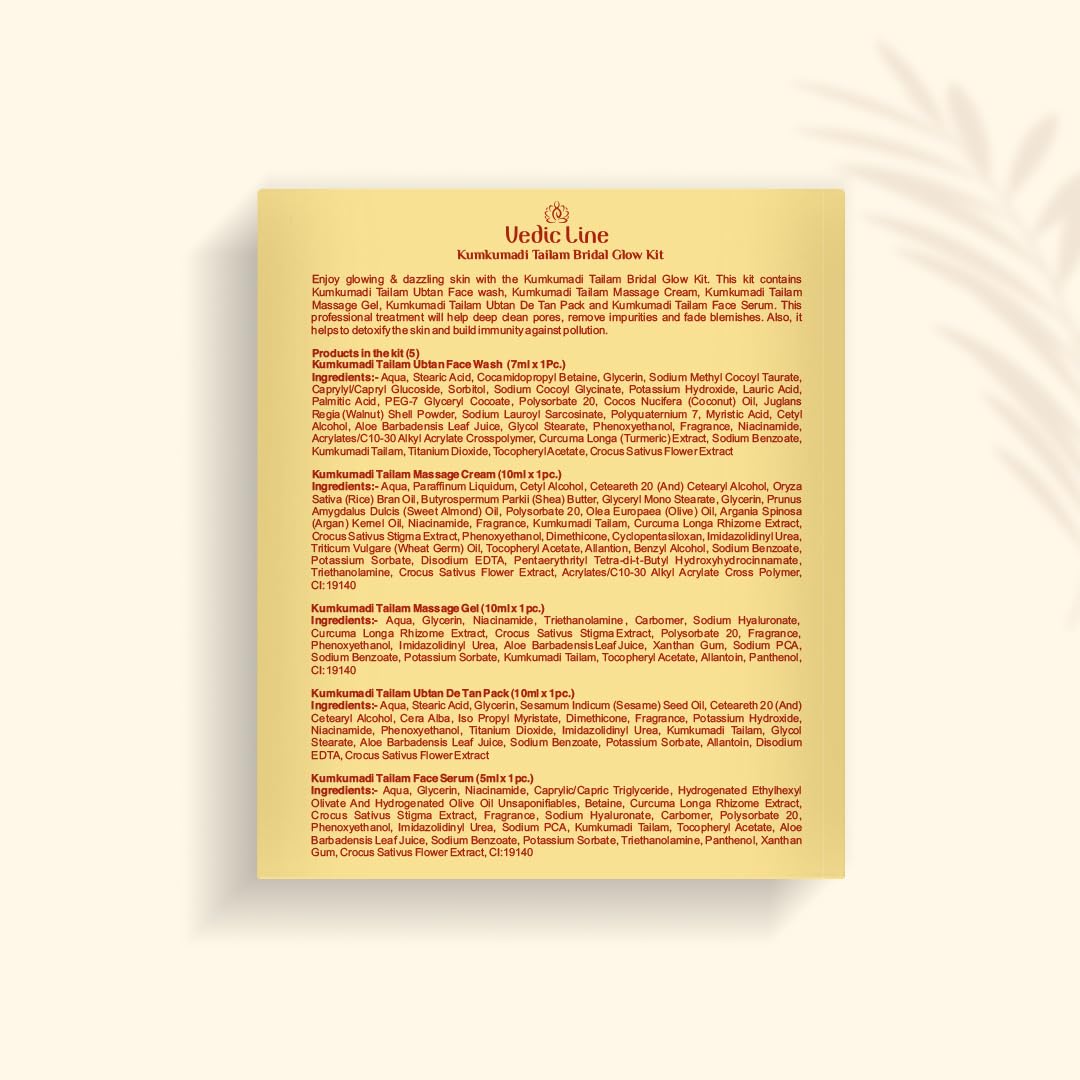 HomeHealth & PersonalSkin CareFace CareFacial KitVedic Line Kumkumadi Tailam Bridal Glow Kit Helps Pull Out Impurities Deeply Clean Pores and Fade Blemishes & Dark Spots With the Kumkumadi Tailam & Almond Oil For Flawless Skin Pack of 4