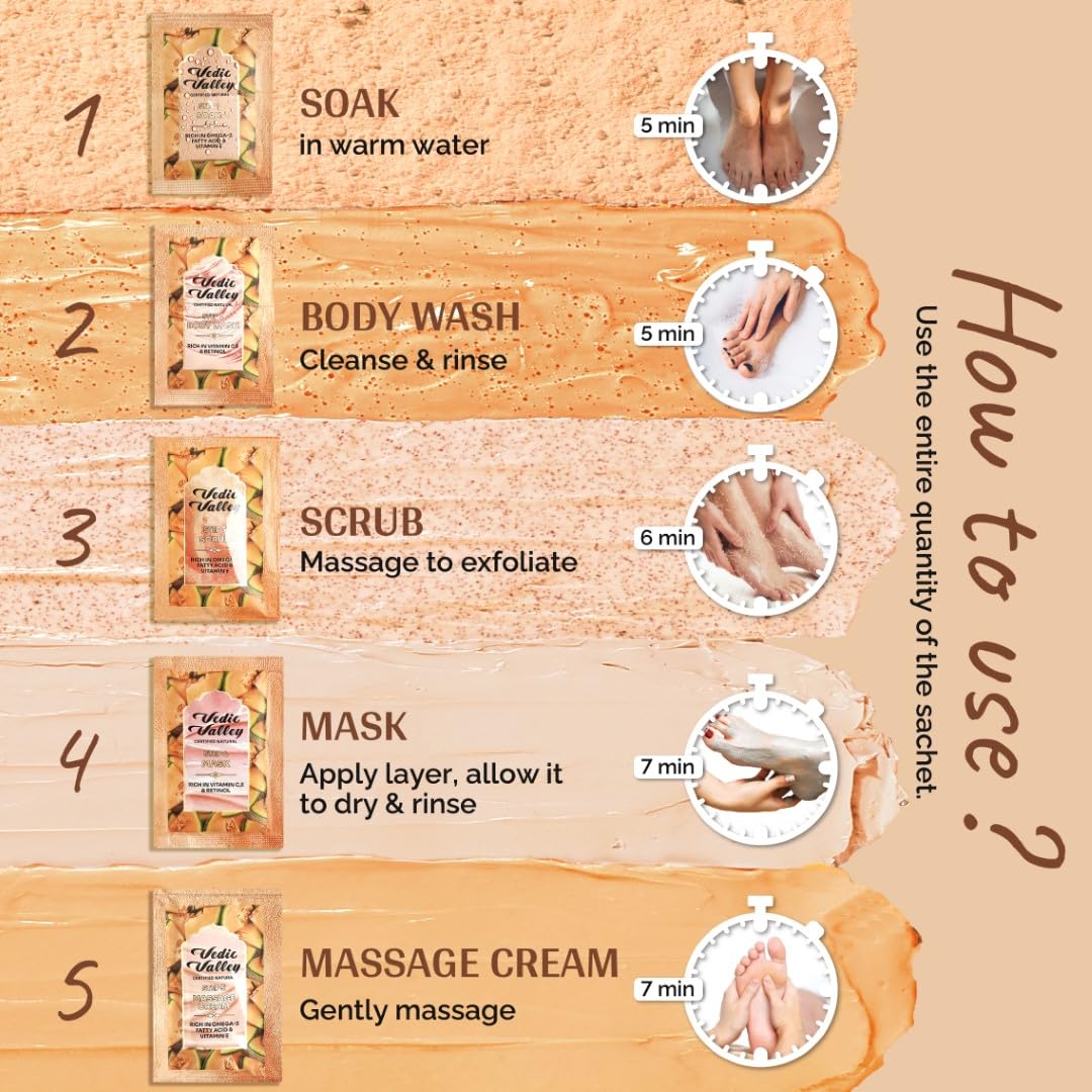 HomeHealth & PersonalSkin CareFace CareFacial KitVedic Valley Manicure Pedicure Kit Repairs Cracked & Dry Heels With Organic Actives Removes Dead Skin Tan for Deep Moisturization Foot Peeling Mask Cream &D-tan Scrub for Women&Men Muskmelon-75 gm