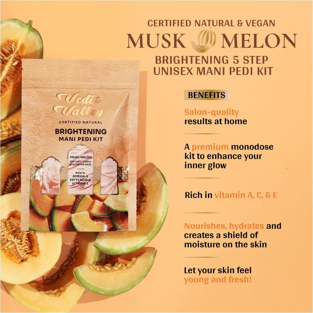 Vedic Valley Manicure Pedicure Kit Repairs Cracked & Dry Heels With Organic Actives Removes Dead Skin Tan for Deep Moisturization Foot Peeling Mask Cream &D-tan Scrub for Women&Men Muskmelon-75 gm