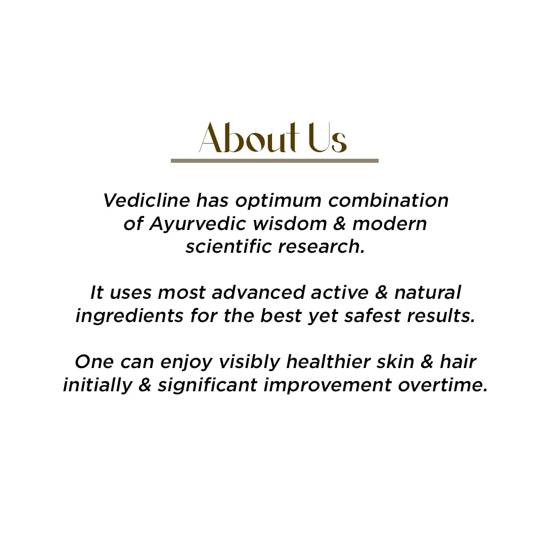 Vedicline has optimum combination of Ayurvedic wisdom & modern scientific research. It uses most advanced active & natural ingredients for the best yet safest results. One can enjoy visibly healthier skin & hair initially & significant improvement overtime.