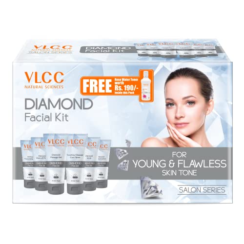 VLCC Diamond Facial Kit with FREE Rose Water Toner - 300g + 100ml | Skin Purifying Facial with Colloidal Diamond, Jojoba Oil, Olive Oil & Aloe Vera. Detoxifying At Home Facial.