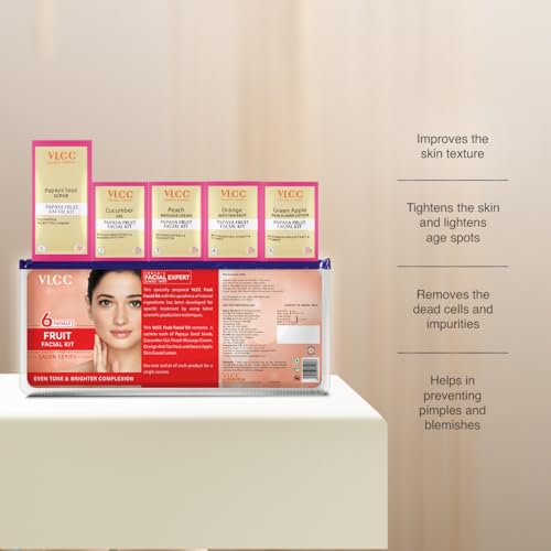 VLCC Salon Series Fruit Facial Kit - ( 6 Facials ) - 300 g | At Home Fruit Facial | Tightens Skin, Lightens Dark Spots & Brightens Skin Tone | Papaya, Cucumber, Peach, Orange & Green Apple.