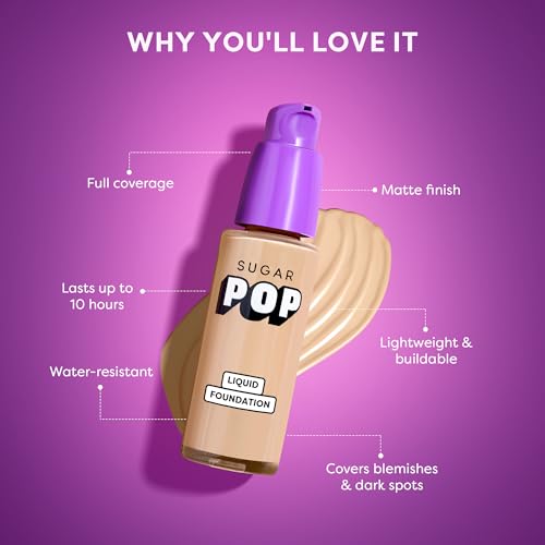SUGAR POP Liquid Foundation - 04 Peanut - 30 ml | Water Resistant | Lasts Upto 10 Hrs | Super Matte | Full Coverage
