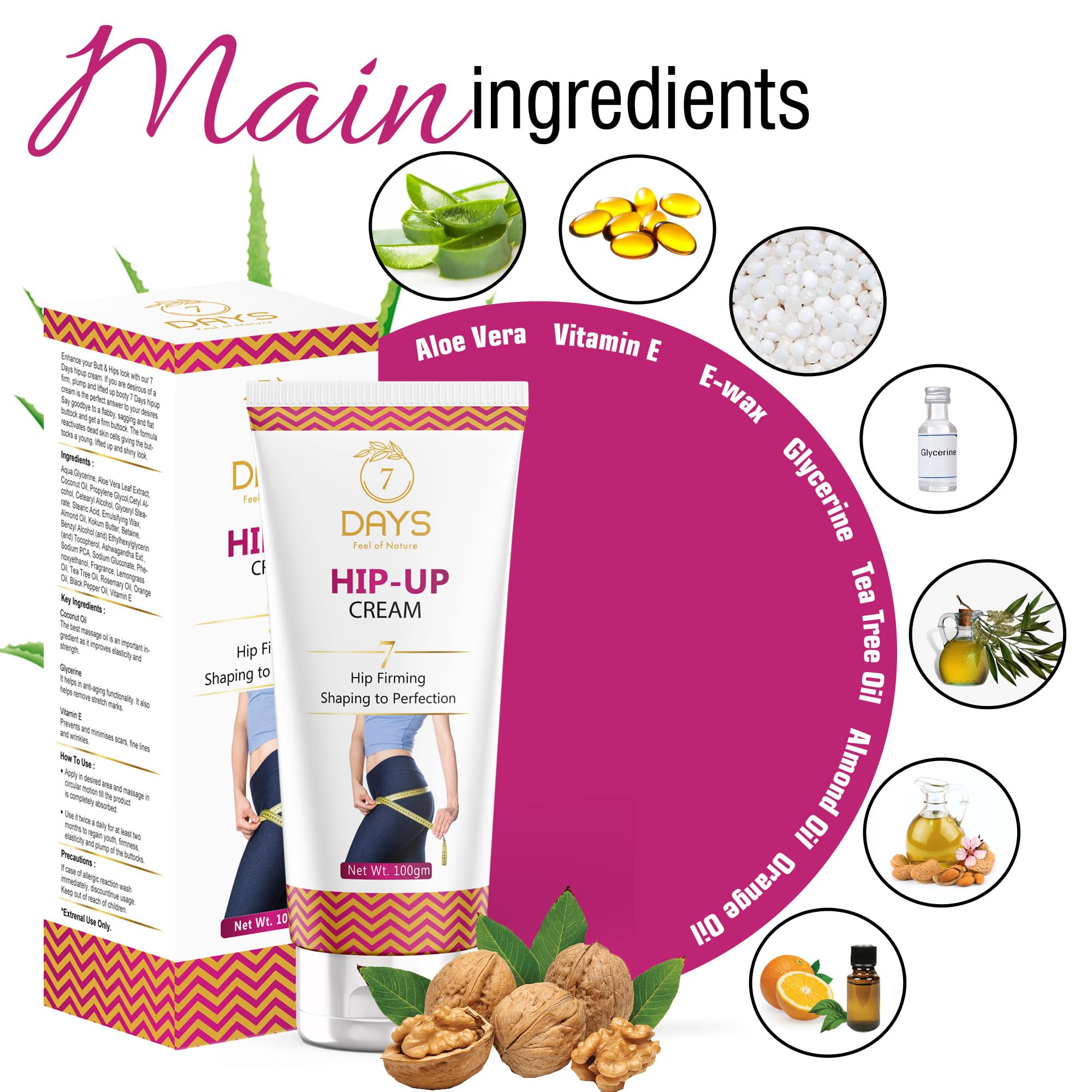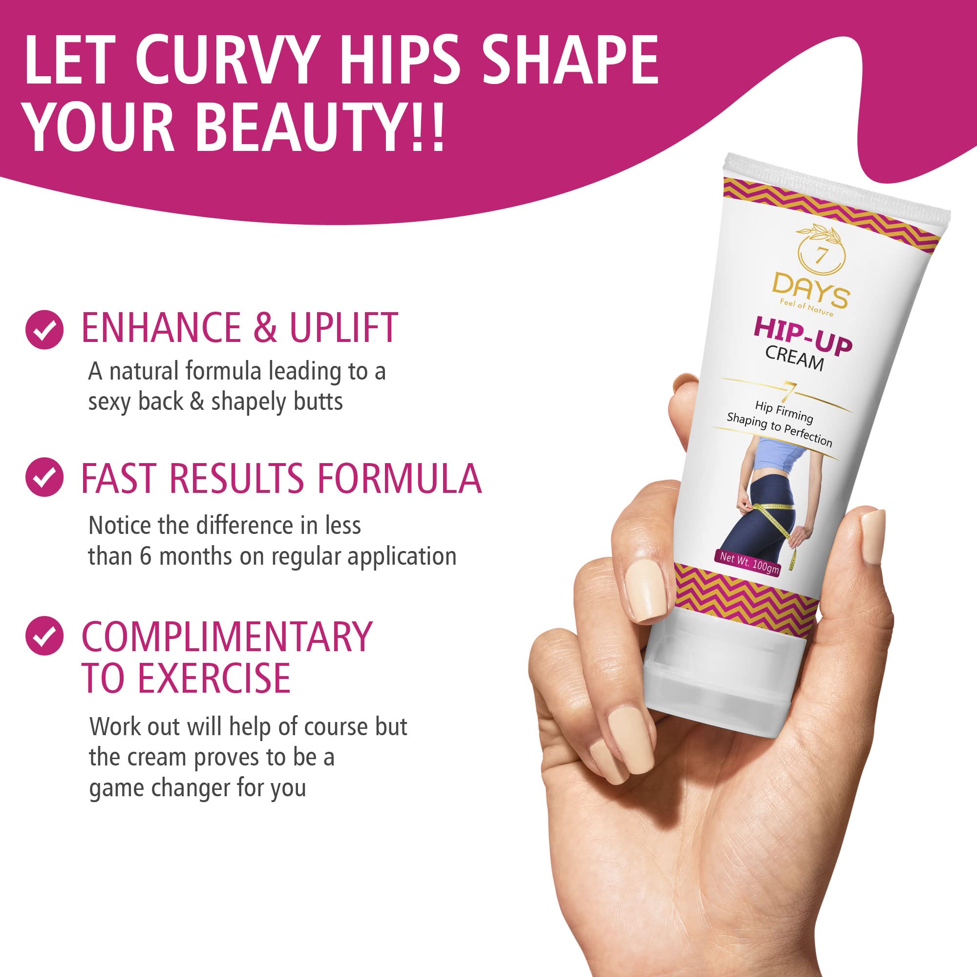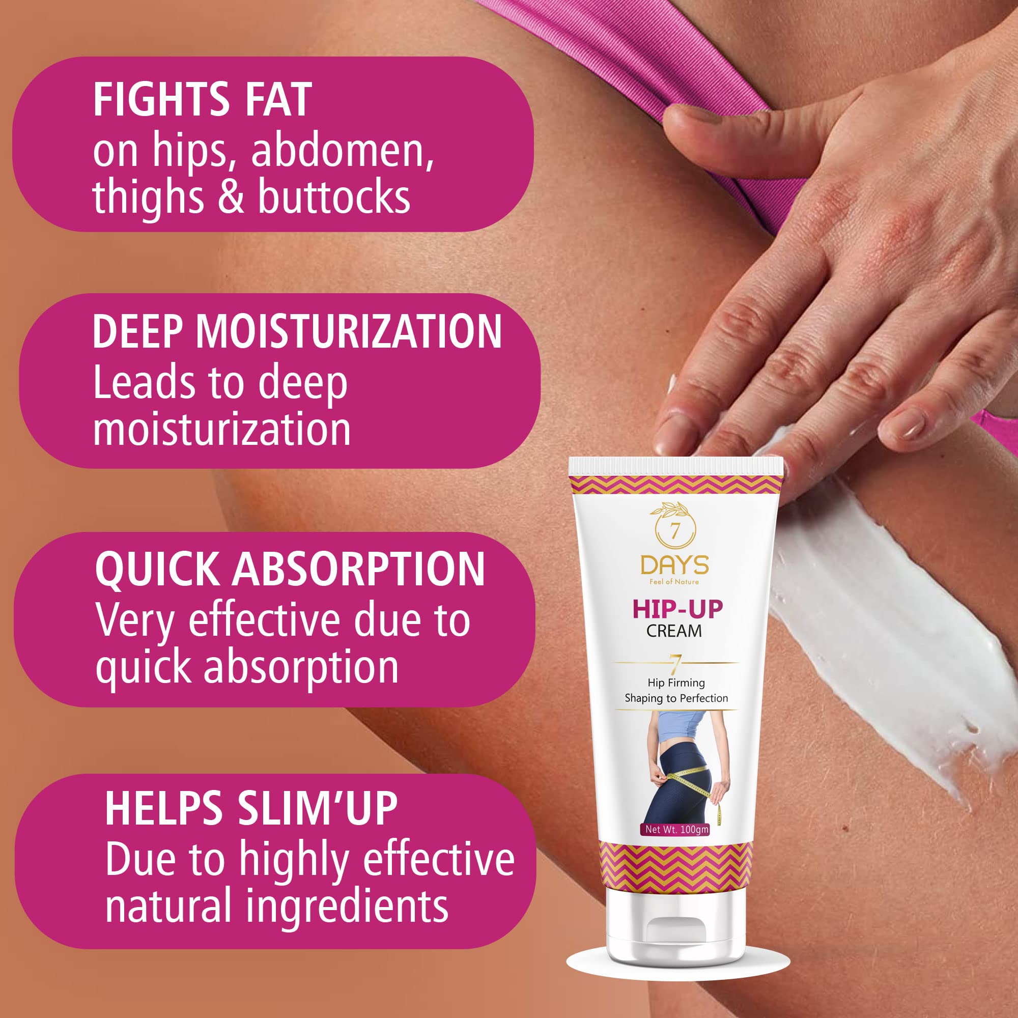 7 Days Body Shaping Cream(HIP-UP) | Herbal Body Care Cream for Women & Girls | Nourishing & Hydrating Formula | 100 Gram Each (Pack of 2)