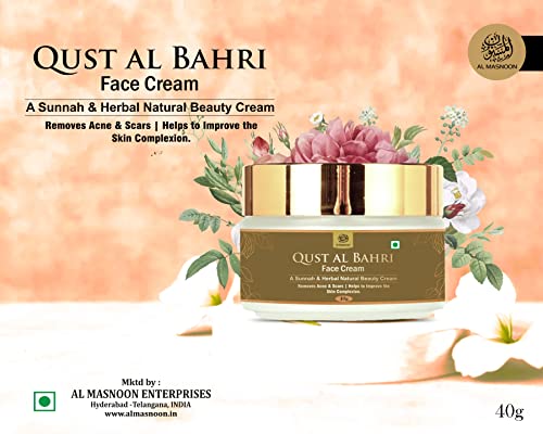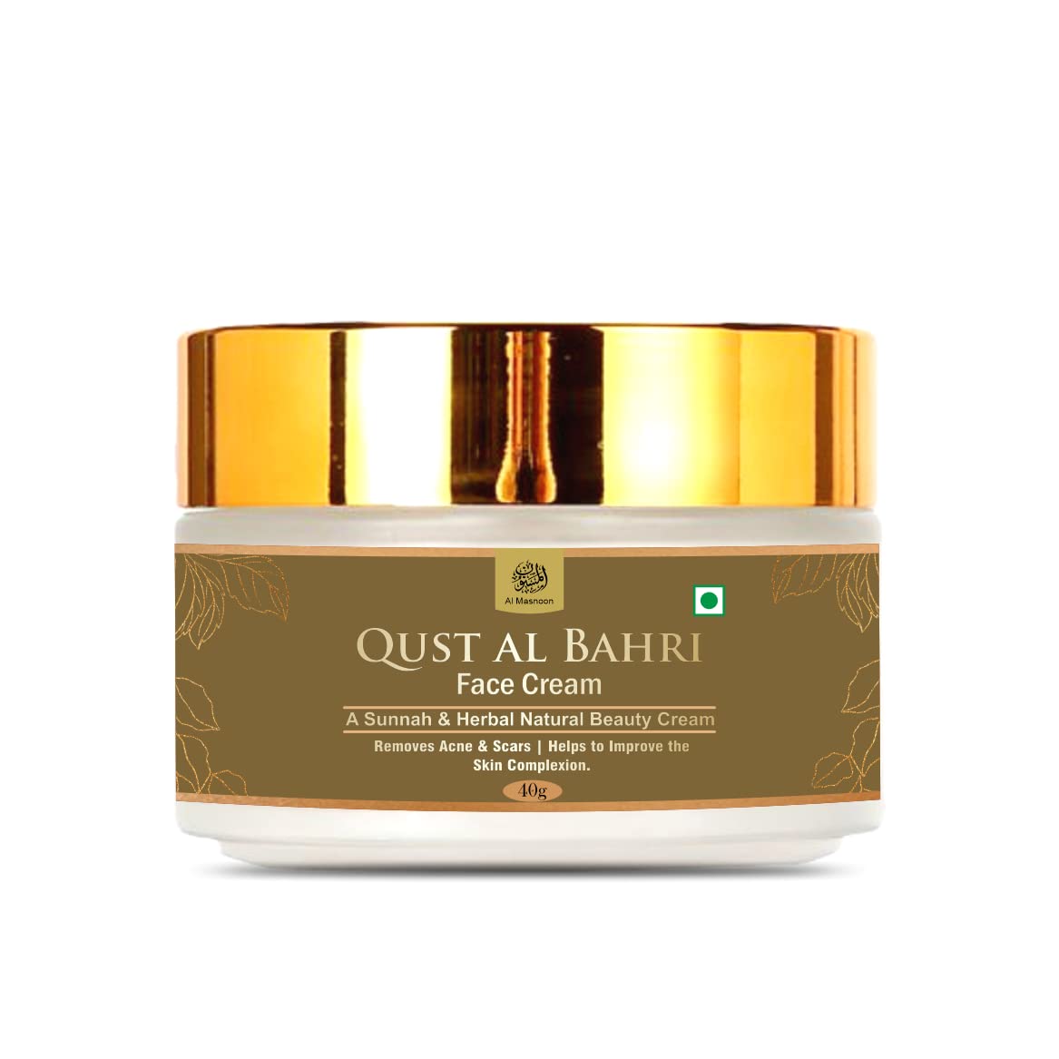 AL MASNOON qust al bahri facial cream is made with the natural ingredients which are removes acne & scars from the face . its made from natural ingredients like qust al bahri (costus root extracts) pure honey olive oil black seed oil . it is a sunnah and ancient formula for all skin or facial problems.