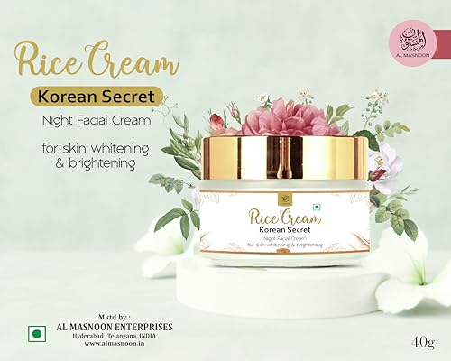 AL MASNOON Rice Night Facial Cream: Korean Secret for Skin Whitening & Brightening 40g Pack of 1