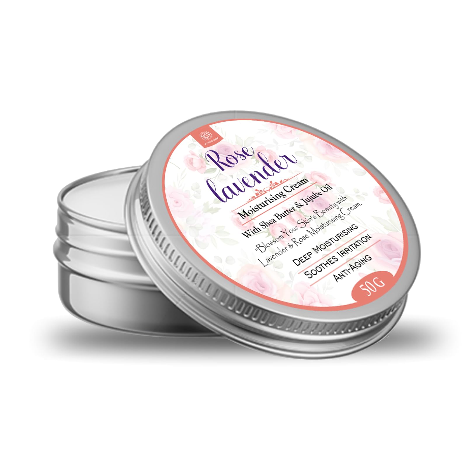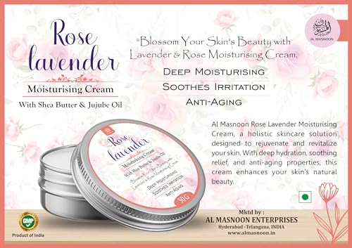 AL MASNOON Rose Lavender Moisturising Body Cream/Made With Shea Butter & Jujube Oil/Deep Moisturising 50g (Pack of 1)