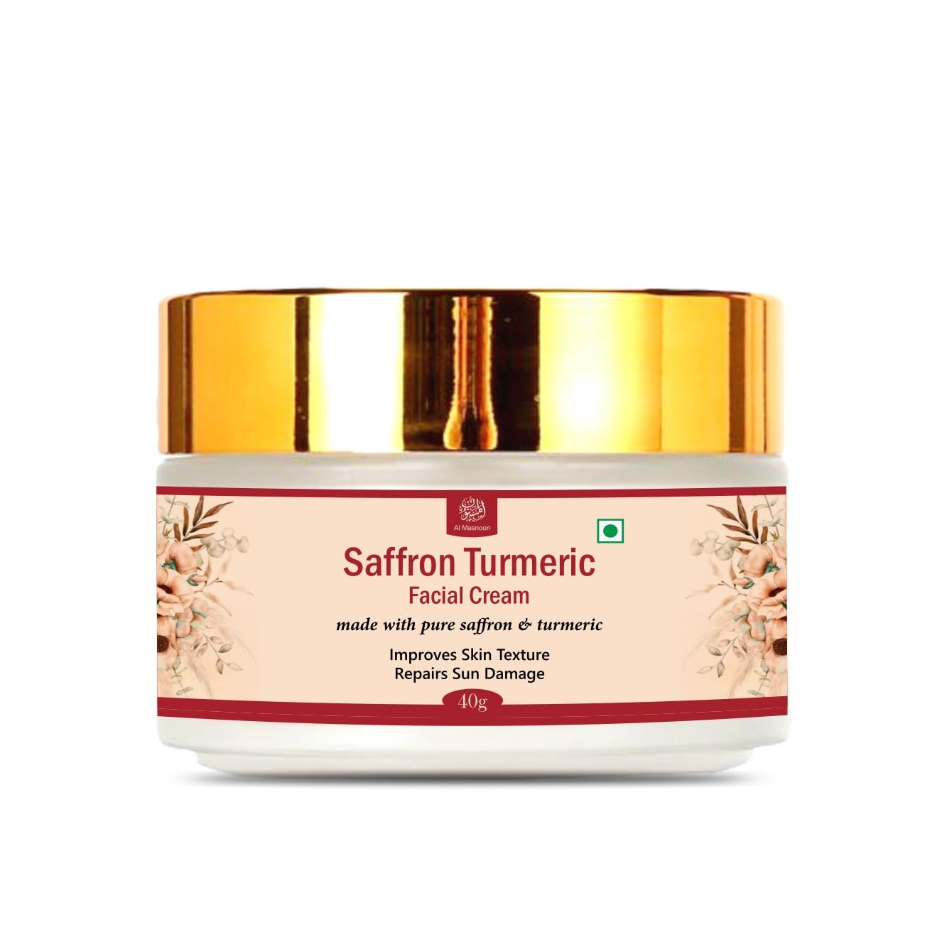 AL MASNOON Saffron Turmeric Face Cream is a luxurious natural moisturizer designed to enhance your skincare routine. This 30g cream is infused with the potent benefits of pure saffron and turmeric making it an exceptional choice for both day and night use. Saffron is known for its brightening properties helping to achieve a radiant complexion and even skin tone. Combined with turmeric which is celebrated for its anti-inflammatory and antioxidant effects this cream works to combat signs of aging reduce the appearance of blemishes and promote overall skin health. The lightweight formula absorbs quickly providing deep hydration without a greasy finish. It's suitable for all skin types helping to nourish and revitalize your skin leaving it soft supple and luminous. Ideal for daily use AL MASNOON Saffron Turmeric Face Cream is your go-to solution for achieving youthful glowing skin. Embrace the natural power of these time-honored ingredients and indulge in a skincare experience that promotes beauty from within!