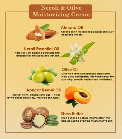 Ancient Living Neroli & Olive Cream is enriched with Neroli essential oil and moisturizing olive oil. It is deeply nourishing and refreshing. It is a storehouse of vitamins A and E which are known for their moisturizing properties. It's antibacterial properties protect the skin from impurities such as acne. It glides on your skin making it soft and supple. It gently exfoliates giving you healthy and spot-free skin. Its infused with Neroli essential which known for its calming and relaxing properties. Its mild floral fragrance invokes feelings of joy. It helps generate new cells keeping your skin youthful. Olive oil improves skin health and imparts a healthy glow. Almond oil eliminates impurities whereas Shea Butter retains skin's natural oil. It breathes back life in your skin and gives you a clear glowing complexion. It moisturizes dry skin and balances oily skin making it perfect for all skin types.