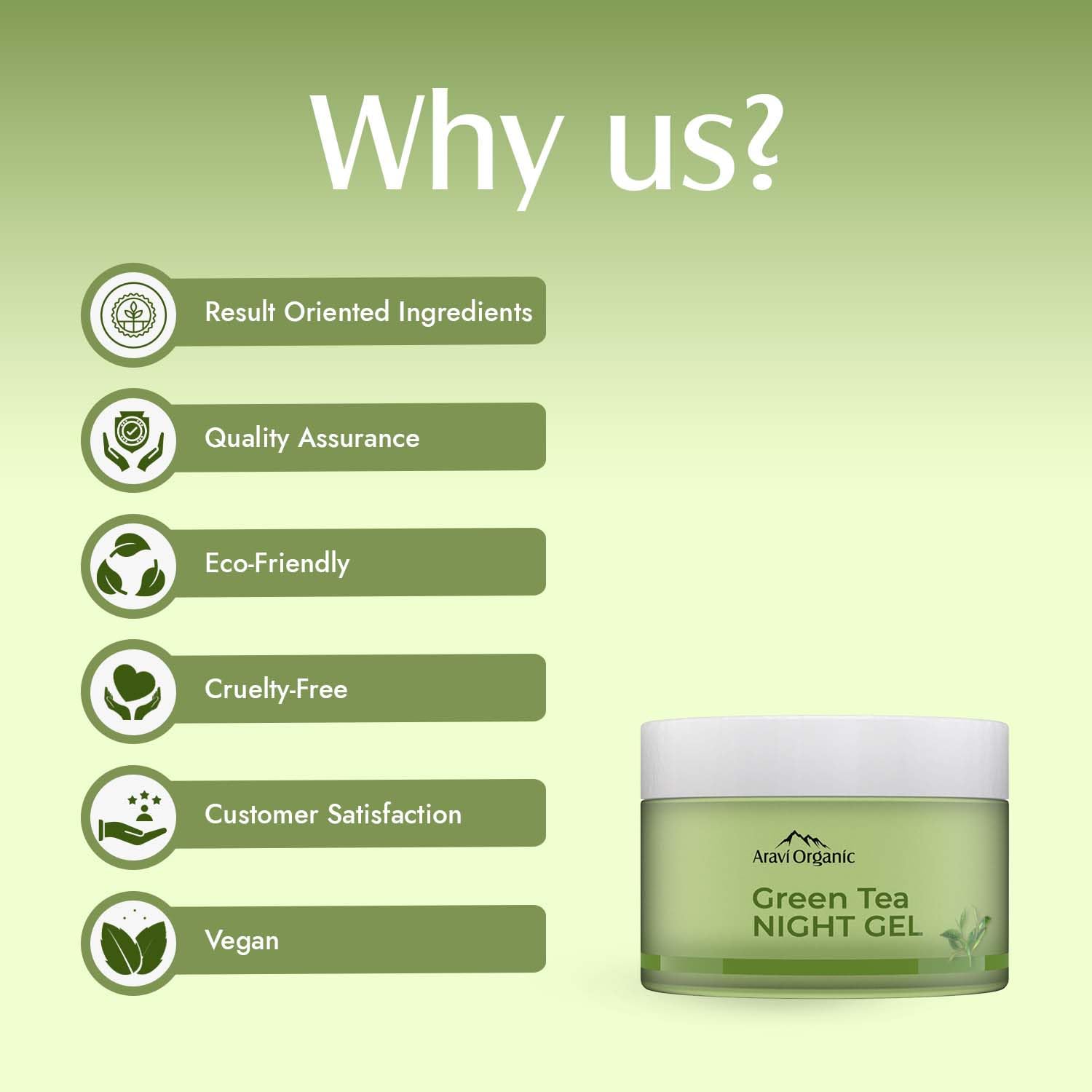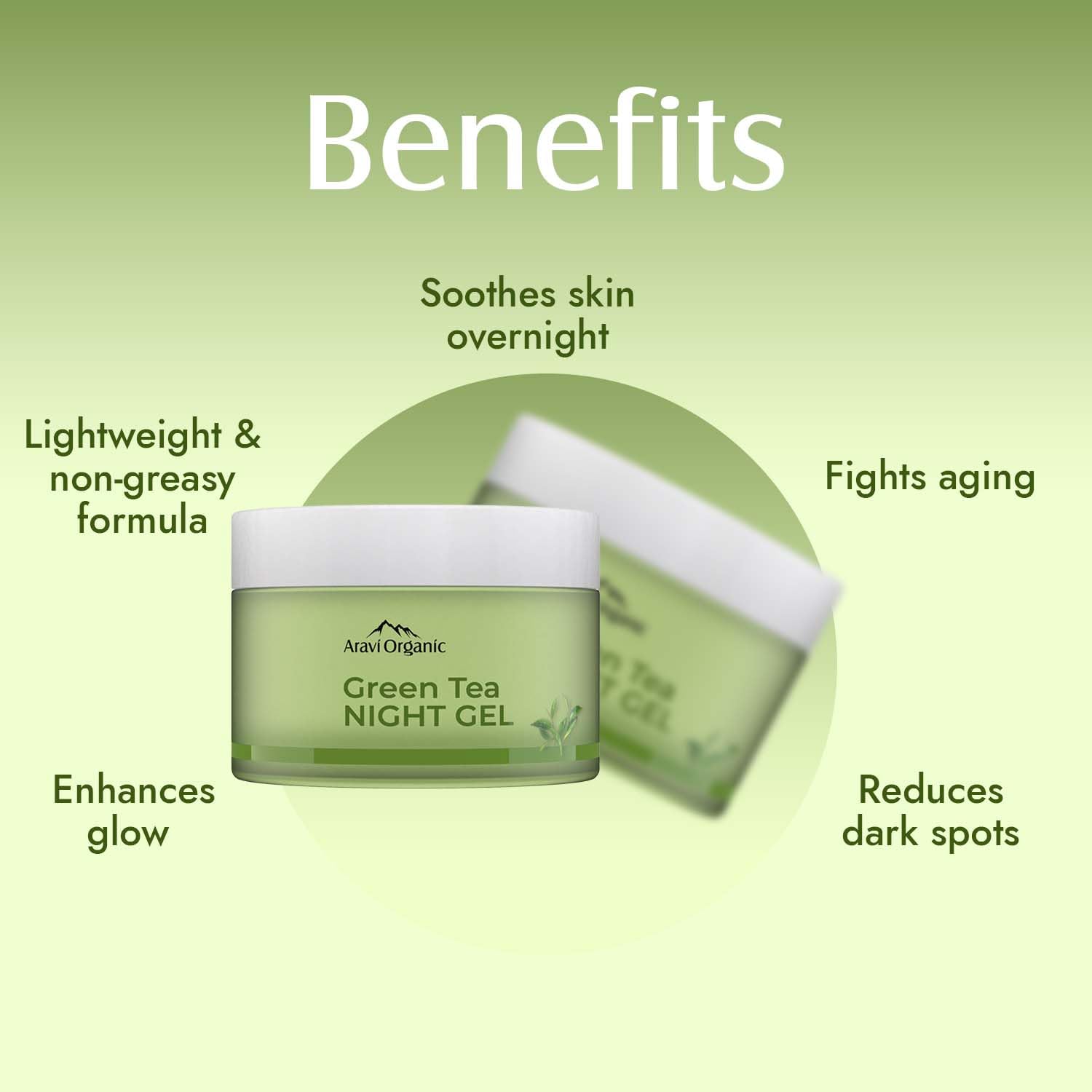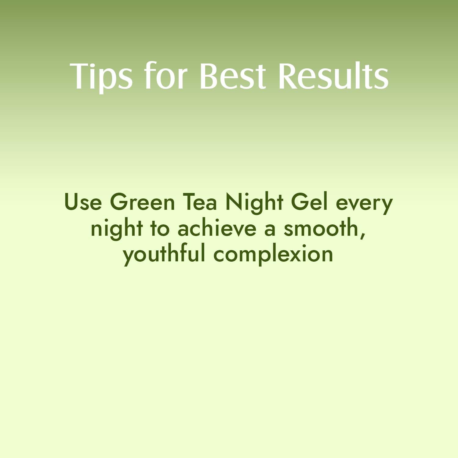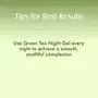 "Wake up to a fresh hydrated skin every morning with our Vitamin C & Green Tea Night Gel . Enriched with Green Tea the night gel eases out fine lines and skin from dark spots and pigmentation. After a long day replenish tired & dull skin with this moisturizing soothing gel. Calm your nights with the refreshing aroma of this night gel as you apply it before going to sleep. Infused with essentifor your skin at the of this night gel is Green tea which is rich in antithat fight free radic. Antimake Green Tea effective for reducing fine lines and wrinkles. Green tea also helps in achieving a natural for your face by reversing the effects of toxins and pollution. Vitamin C present in Green tea helps tone & soothe the skin and gives a healthy glow. Vitamin C also smoothens skin while relieving dark spots & pigmentation. Free from SLS SLES and Silicones Night Gel is ideal for the revitalization of your skin while you sleep. The formula is dermatologically tested and pH balanced to suit all skin types keeping your skin healthy and glowing. it to your bedtime face care regime for a hydrated & nourished skin."