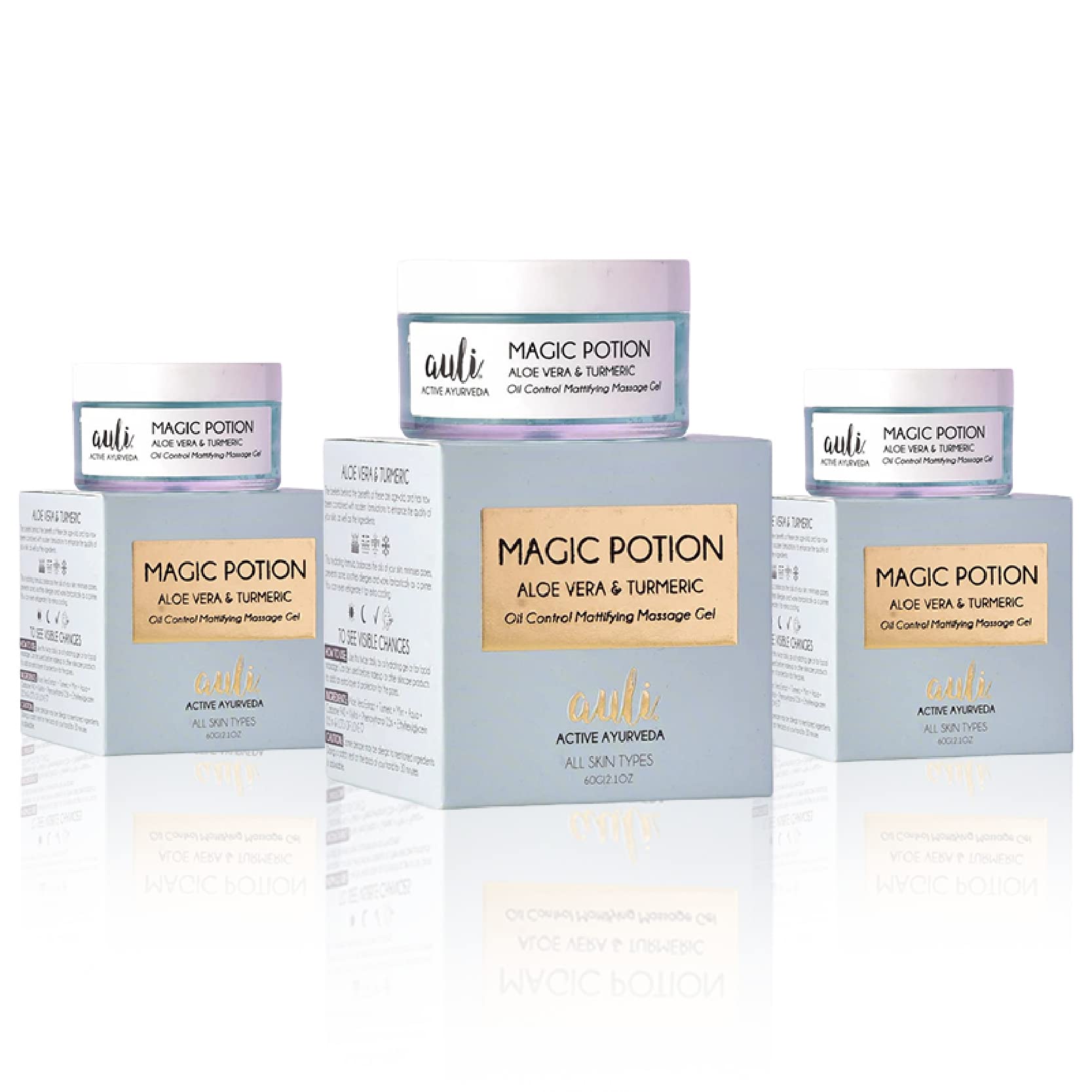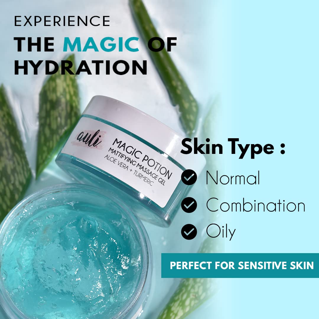 HomeHealth & PersonalSkin CareFace CareMoisturiser & CreamAULI LIFESTYLE Auli Magic Potion Aloevera Gel For Glowing Skin Moisturiser & Primar Aloe Vera And Turmeric For Hydrated Refreshed Cool Glowing Skin For All Skin Type Pack Of 3 120 Gm