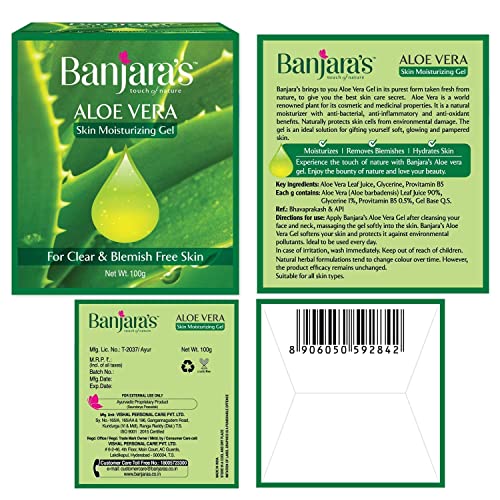 Banjara's Multipurpose Aloe Vera Moisturizing Gel with intense Moisturizing Formula, 100gm