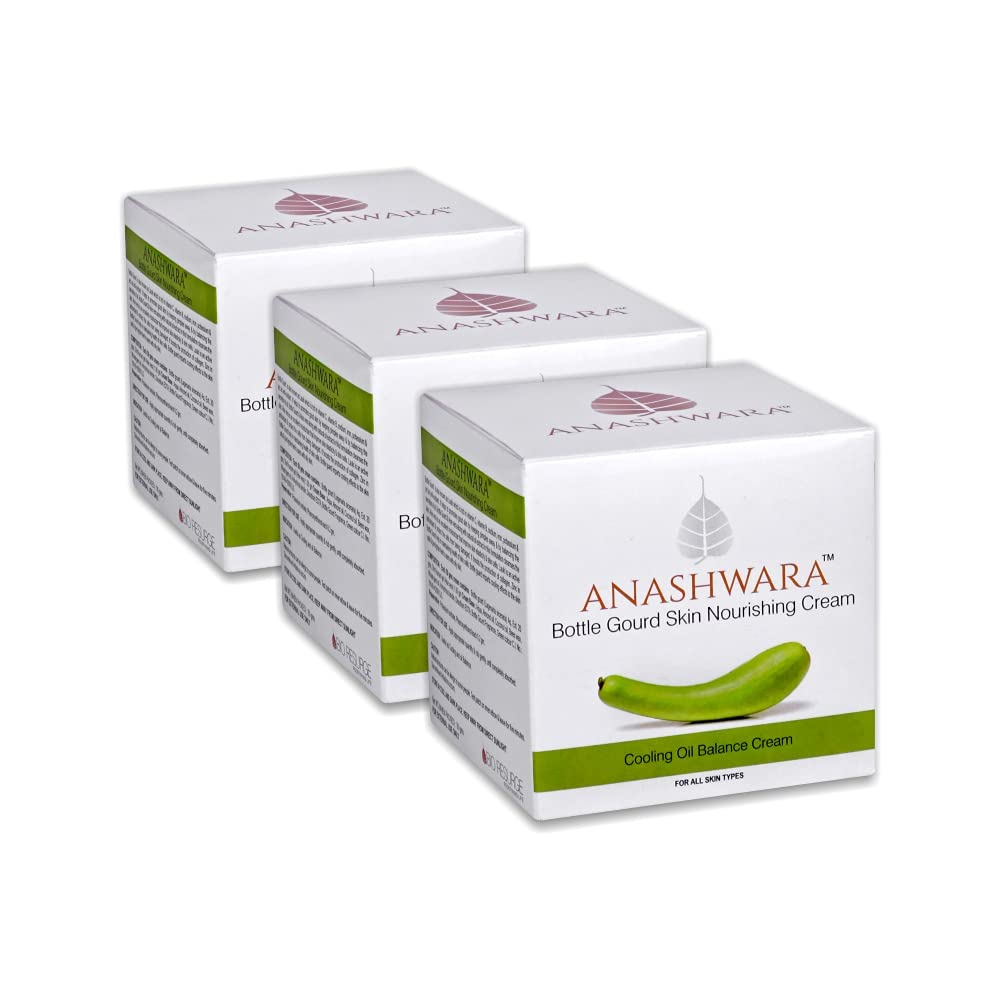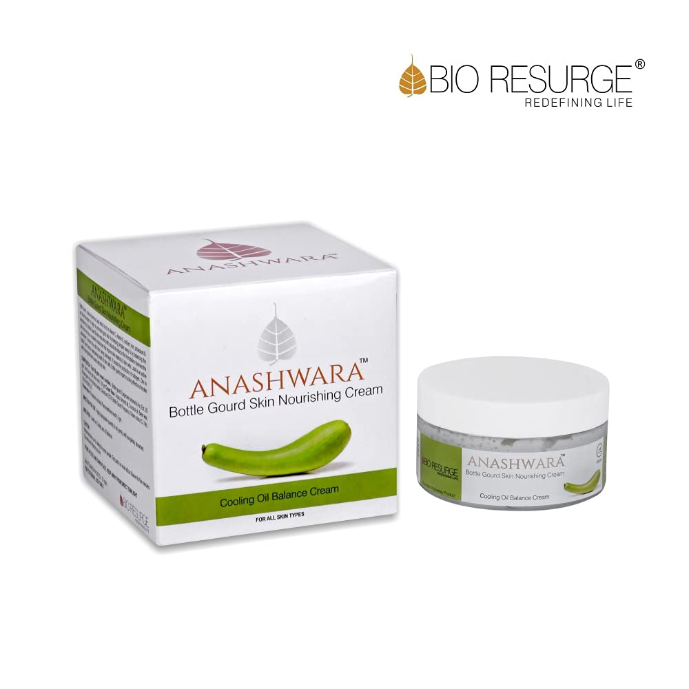 Anashwara bottle gourd skin nourishing cream is rich in vitamin c vitamin b sodium iron potassium & zinc and offers a cooling effect that will leave your skin looking fresh. Balances oil secretion of skin. Act as excellent moisturizer and improve your skin elasticity.For best results use with Bio Resurge's Neem Haldi Face Wash