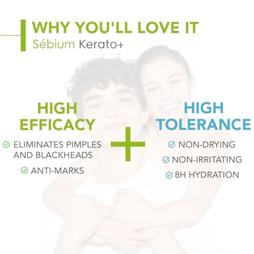 Sebium Kerato+ is a high tolerance anti-blemish gel cream with visible results in 2 days. Anti-blemish: eliminates pimples and blackheads Anti-marks : reduces existing marks and prevents the formation of new ones High tolerance 8h hydration Non-drying "