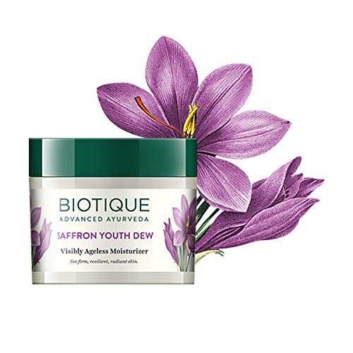 Biotique Bio Saffron Dew Youthful Nourishing Day Cream For All Skin Types 50GBiotique saffron youth dew is a light feeling moisturizer blended with pure saffron almond and pistachio oils. It also has turmeric and wild turmeric extracts which replenishes and help sustain skins dewy fullness of youth. With its regular use dry lines and wrinkles are visibly reduced. This youth dew lotion is a natural source of vitamins and minerals which is helpful for the nourishment of the skin. It acts as a nourisher and revitalizer both.Directions for Use1. Apply it to the cleansed face and body.2. Use gentlly circular massage motions until absorbed.3. Can be used twice a day.IngredientsKesar (Crocus sativus) 0.03% Pista tail (Pistachia vera) 1.0% Banhaldi (Curcuma aromatica) 2.0% Badam (Prunus amygdalus) 1.0% Haldi (Curcuma longa) 3.0% Cream base Qty 50gm
