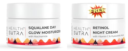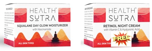 BUY 1 GET 1 FREE BUY Health Sutra Squalane (Plant) Day Glow Moisturizer cream for face with Niacinamide (50 gm) AND GET Retinol Night Cream with Vitamin C and Hyaluronic Acid (50 gm) worth Rs. 649/- FREE