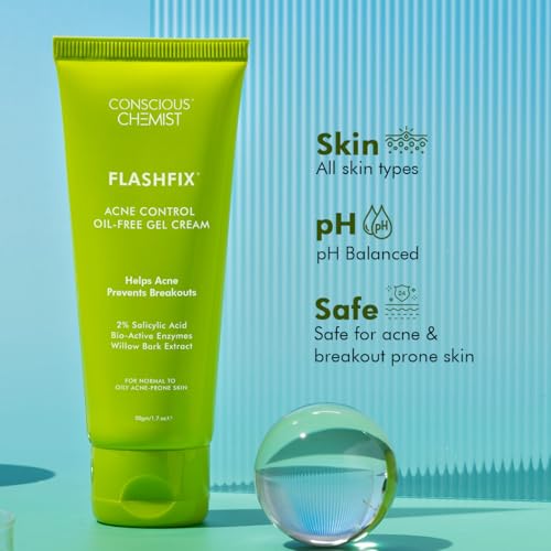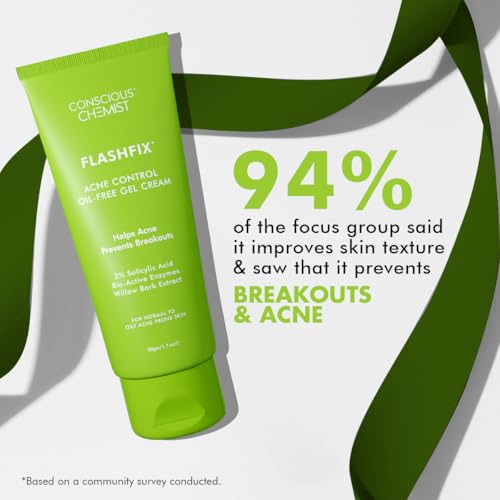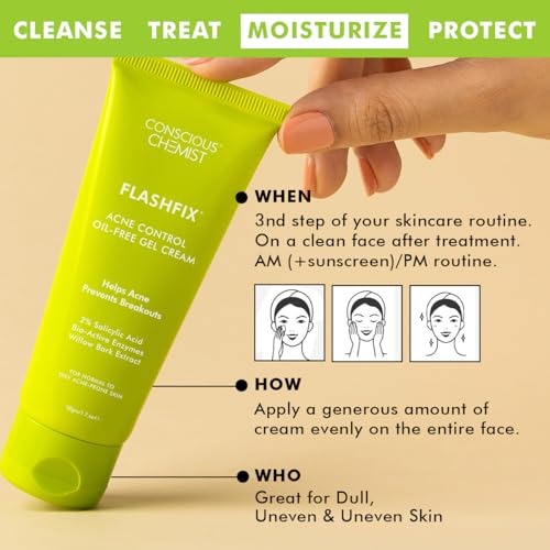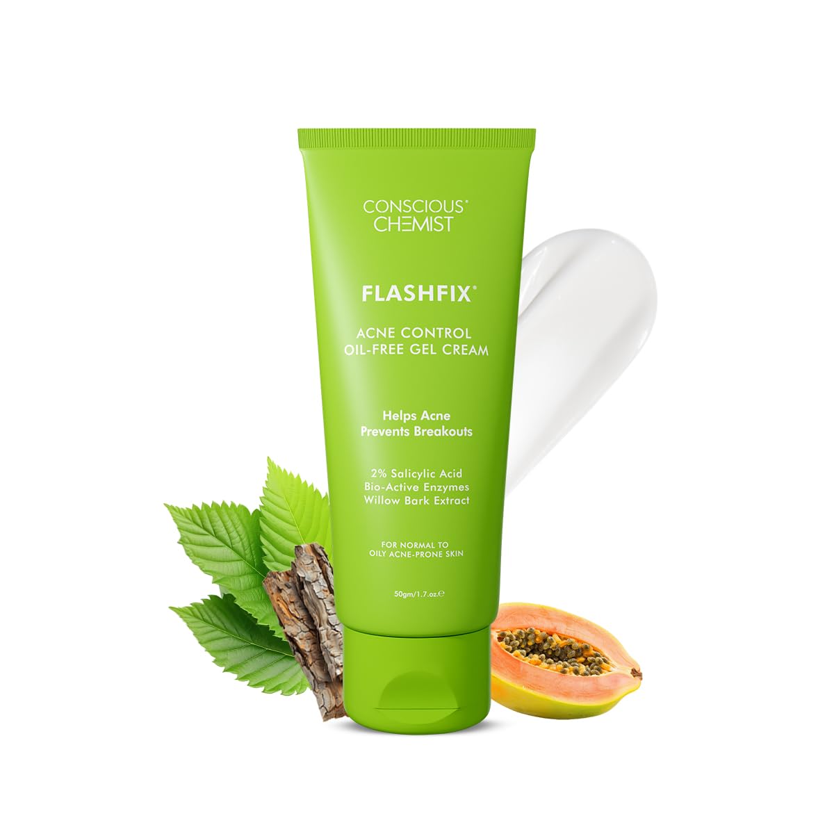 Conscious Chemist® 2% Salicylic Acid Cream | 50g | Acne Spot Corrector | Moisturizer for Oily Acne Prone Skin, Face Cream for Men & Women, Overnight Acne & Oil Control, Itchiness & Redness, Non greasy Gel Cream - Flashfix