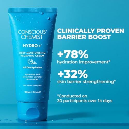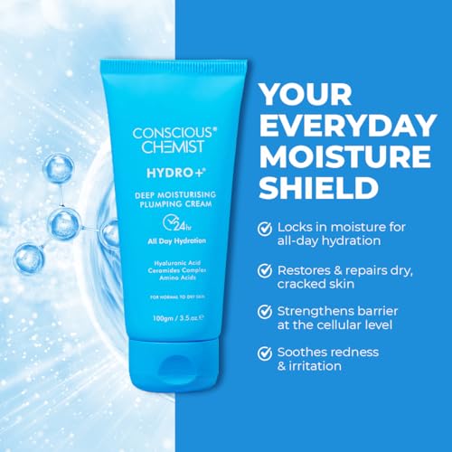 Conscious Chemist Hyaluronic Acid Moisturizer | 100g | Moisturizer for Dry Skin Face, Ceramide Moisturizer, Face Cream for Men & Women, Treat Dull, Dehydrated Skin, For Normal to Dry Skin - Hydro+
