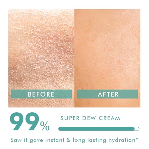Super Dew ï¸ is built with a blend of ceramides anti-oxidants emollients and skin restoring actives it protects against harsh and dry environments. The lush creamy texture easily glides on to leave a radiant dewy finish without a greasy feeling .