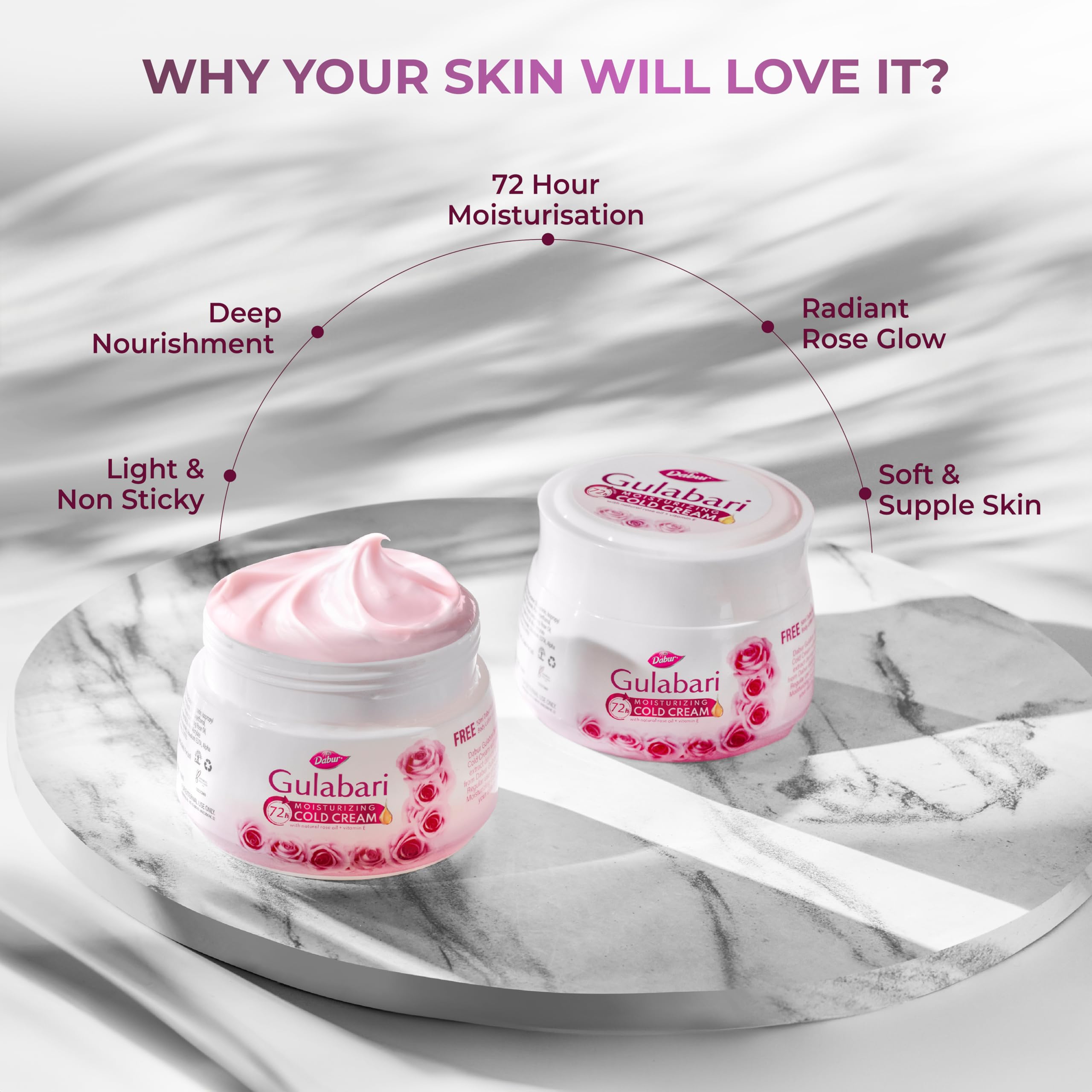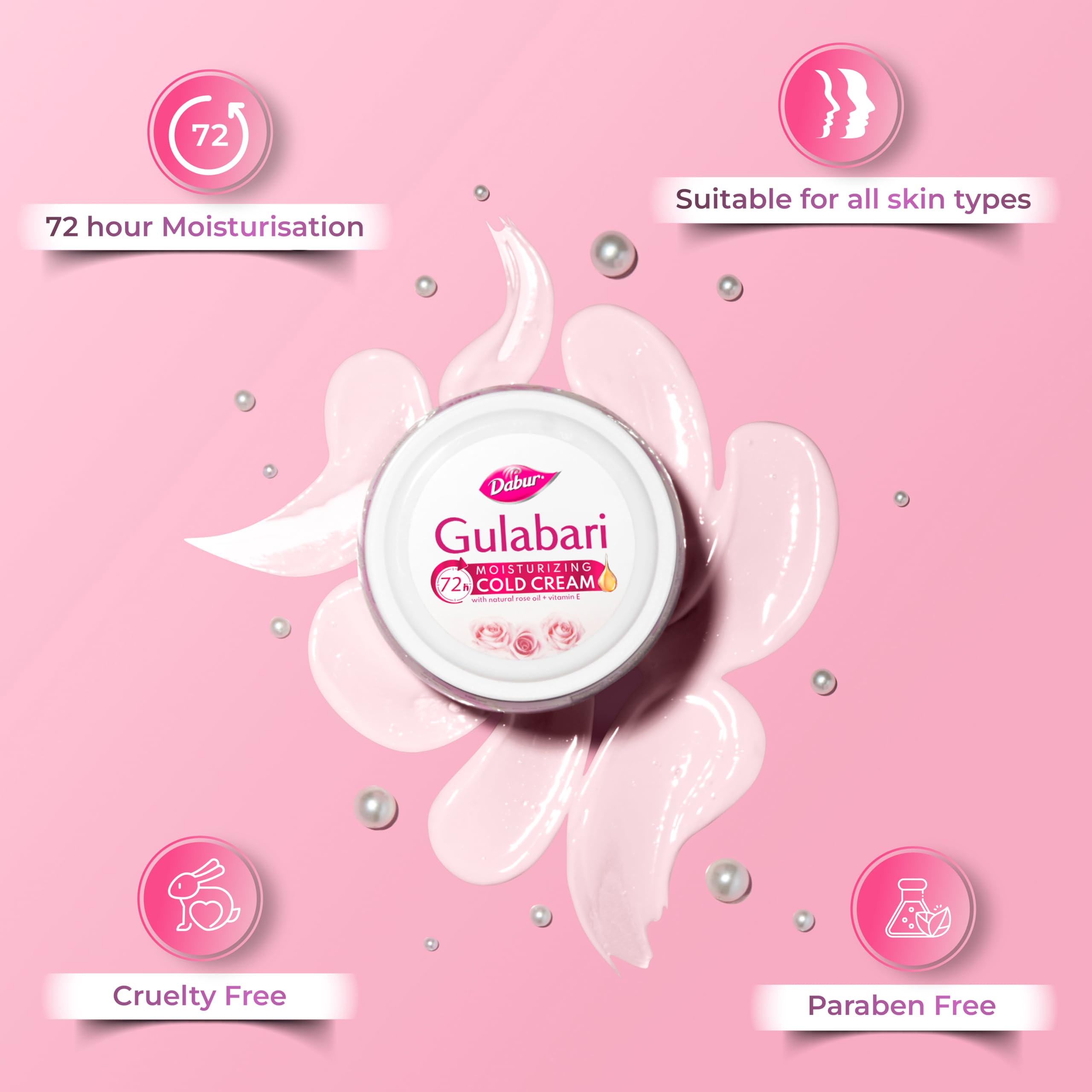 Dabur Gulabari Moisturizing Cold Cream 100gm + Gualabari Lip Balm 8gm | With Goodness of Natural Rose Oil & Vitamin E | Intense Hydration and Deep Moisturization | For Smooth & Soft skin | All Skin types