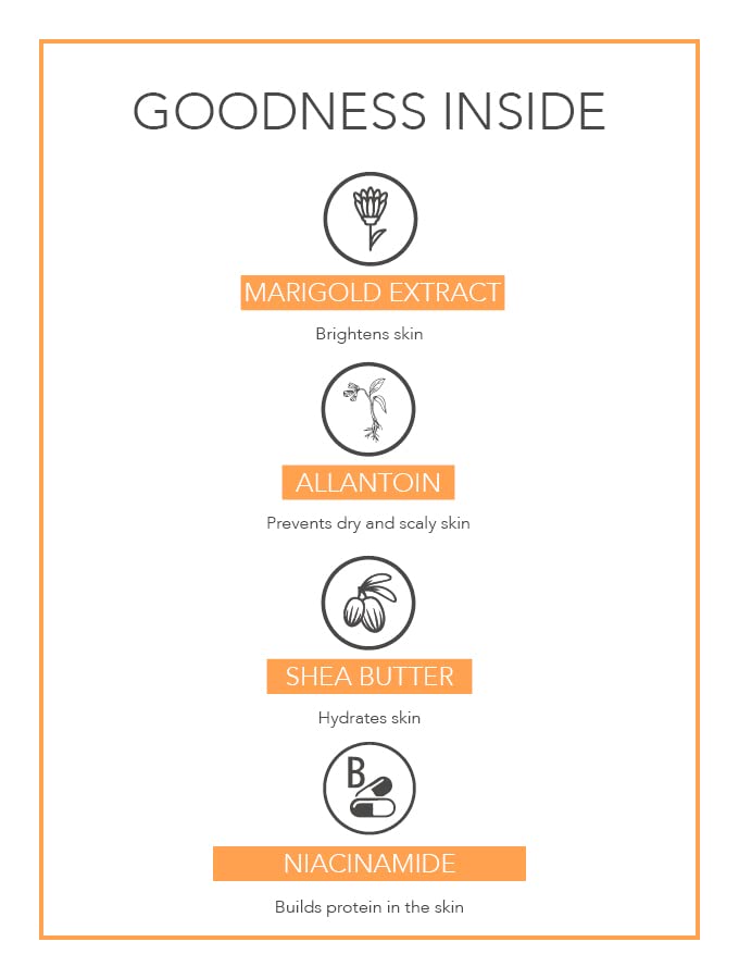 • Marigold Extract gently heand soothes the skin working as a powerful antiseptic
