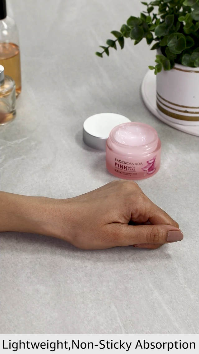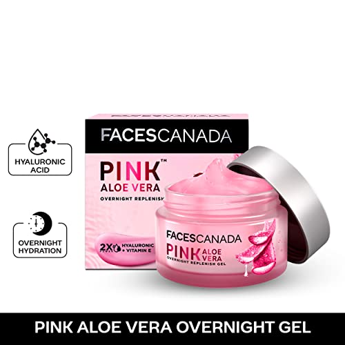 Let your skin heal overnight with the perfect FACESCANADA Pink Aloe Vera Overnight Replenish Gel. This lightweight gel creme arduously works overnight to boost the skin's hydration while you sleep. Pink Aloe Vera a South Korean beauty secret is a blessing in disguise for hydration. Without enough hydration your skin is bound to look dull and age faster. FACESCANADA has combined the power of two multi-benefit hero ingredients Hyaluronic Acid and Vitamin E. Hyaluronic Acid locks in essential moisture and hydrates the deepest layers of the skin. Vitamin E multiplies that hydration and tightens the skin. Stop dreaming about that perfect flawless young glass skin as you are about to wake up to one. Wake up to supple plump and radiant skin with this cruelty-free Vegan night gel creme.
