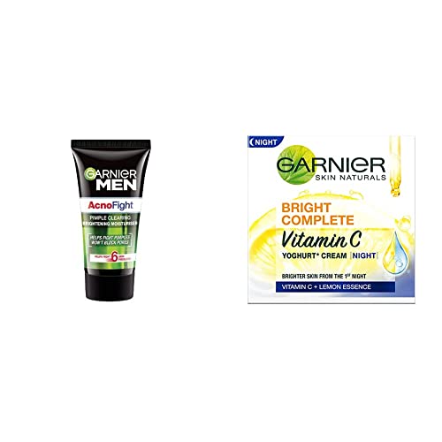 Garnier Men Acno Fight Pimple Clearing Brightening Moisturizer, 45g & Garnier Bright Complete VITAMIN C YOGHURT Night Cream, 40g