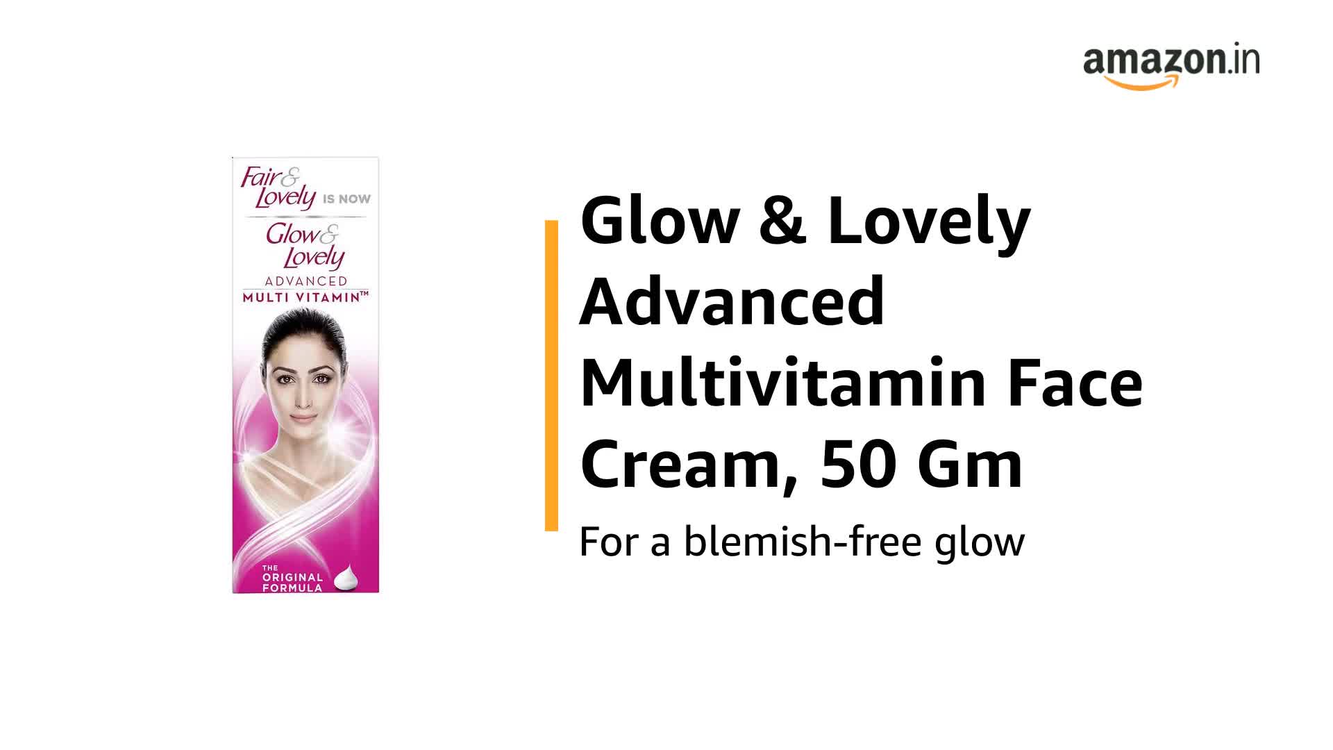 Glow & Lovely Advanced Multi Vitamin Cream (formerly known as Fair & Lovely) works like a skin expert to give you a radiant glow- which is skin clarity brightness and Radiance. Enriched with Vitamin B3 C and E this cream gets quickly absorbed and penetrates deep into the skin to brighten skin cells reduce spots and illuminate skin from inside out. Vitamin B3 also known as Niacinamide is known to improve skin barrier act as an anti-inflammatory protecting the skinâs natural health and giving a glow. Vitamin C protects the skin from external damage and is known to improve skin immunity and reduce spots. Vitamin E moisturizes your skin from deep within keeping it hydrated. Allantoin helps remove dull skin cells from top layers of skin revelling soft smooth glowing skin. Also has antioxidants that reduces dark circles. This formulation is clinically proven to give an even-toned; glowing skin which is non-oily. Sunscreen with SPF 15 protects the skin by effectively blocking UV rays. The product has no bleaching agents and is dermatologically tested and proved. Just dot over face and massage evenly over face and neck. Use twice daily for best results after cleansing skin with Glow & Lovely Instant Glow Facewash.