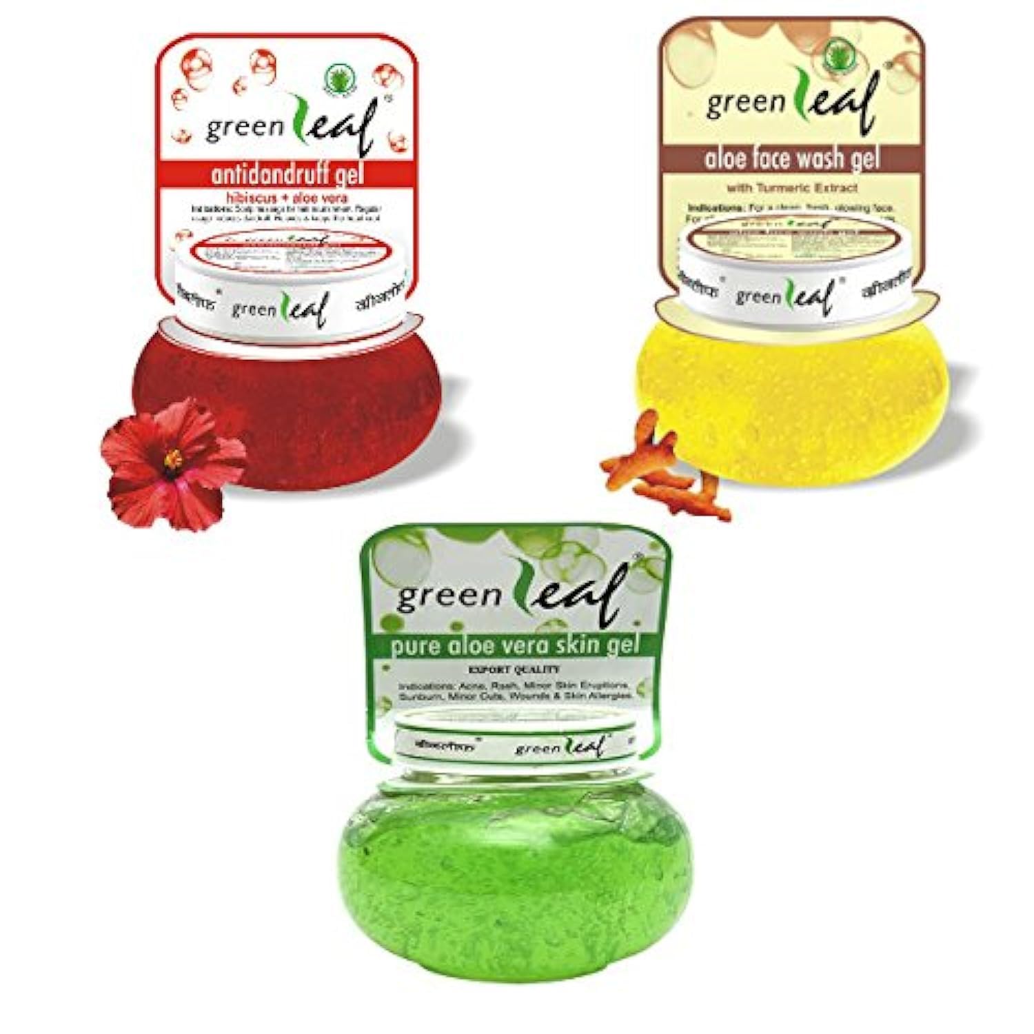 Green Leaf Pure Aloe Vera Skin Gel 120 gmAloe Face Wash Gel - 120 gmAnti Dandruff Gel - 120 gm (Pack Combo )