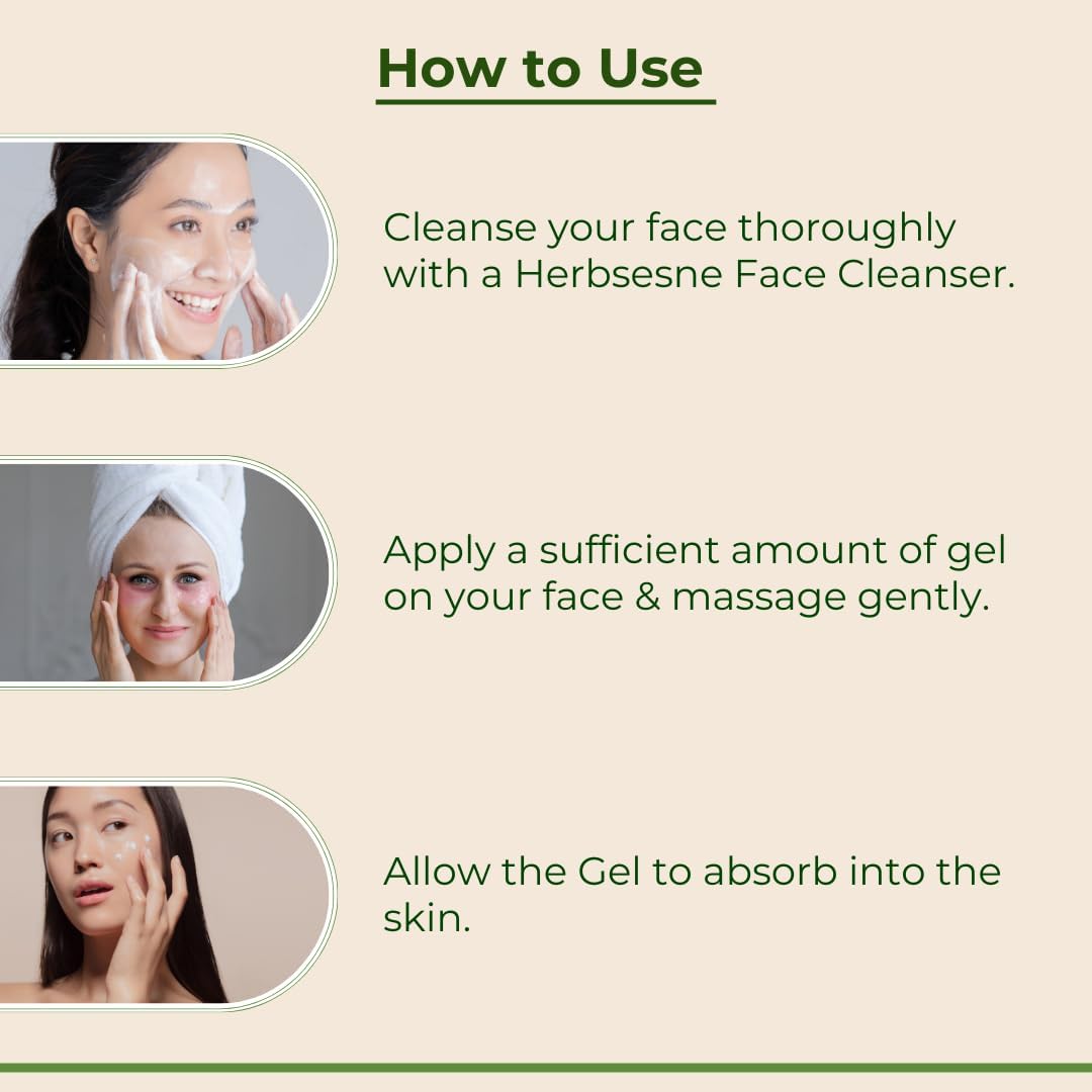 • Directions: Start by washing your hands first to ensure there will be no transfer of germs and bacteria and then cleansing and toning your skin. Then take pea-sized amount of Our Aloe Vera GelApply on your face neck & hair spread evenlyMassage gently till