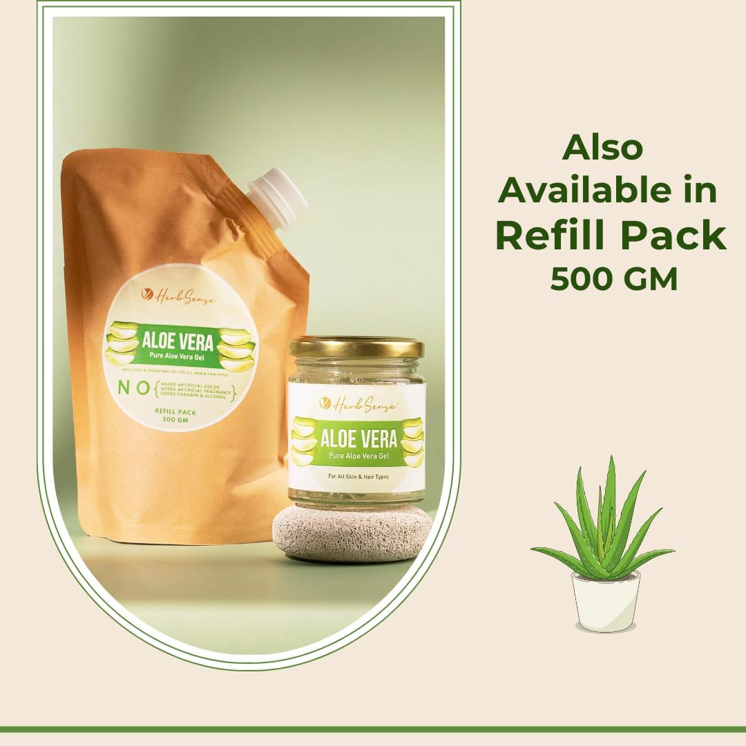 Herbsense Aloe Vera Gel For Skin & Hair Soothing Hydrating Moisturizing & Non-Sticky Gel Fragrance & Color Free Pack of 1 180 GM