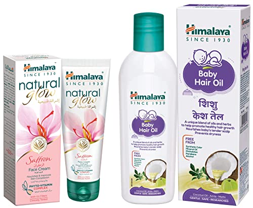 Himalaya Baby Hair Oil 200 ml(1 Count)About Himalaya Baby Hair Oil: Himalaya Baby Hair Oil is specially formulated for babies and is designed to nourish scalp and hair. Infused with a blend of oil and herbs Himalaya Baby Hair Oil helps promote hair growth nourish hair and prevent dryness and keeps the scalp moisturized. Benefits of Himalaya Baby Hair Oil ⢠Infused with the goodness of Amla Bhringaraja Gotu kola and Methi which are known to promote hair growth and luster ⢠Enriched with the nourishing oils of Coconut Sesame Almond and Olive ⢠Helps nourish scalp and hair ⢠Moisturizes dry and itchy scalp ⢠Free from mineral oil alcohol parabens synthetic color and phthalates ⢠Dermatologically tested clinically tested ⢠Non-sticky and non-stainingHimalaya Herbals Natural Glow Fairness Cream 50gmFairness Cream: Nature's way to fairer skin. What it does: Himalaya's Fairness Cream combines 100 percent natural ingredients to tackle a dull uneven complexion and clear dark spots and discolored and pigmented skin. Its unique formulation ensures ease of application faster absorption and better nourishment to the skin. Enriched with the extracts of Persian Rose Mandarin Orange Walnut and Aloe Vera Fairness Cream works round the clock providing four-dimensional fairness. The cream enhances the complexion evens out skin tone imparts a natural glow and reduces the appearance of blemishes. Its easy application and absorption helps nourish skin more effectively. The herbal combination also improves hydration and skin cell renewal at the epidermal cell layers. The result is visibly clearer and fairer skin with the following benefits: Significant reduction in pigmentation Increase in skin softness Effectively lightens overall complexion Skin glowing effect Nourishes the skin Key ingredients: Persian Rose revitalizes the skin by eliminating dead cells impurities and excess oil and leaves it feeling rejuvenated. Walnut is a regenerative oil that is slightly acidic and kills bacteria on the skin. It is particularly effective in treating acne and in soothing sunburned skin and eczema. It removes dirt blackheads and dead cells and nourishes the skin. Aloe Vera is used extensively in Ayurveda for wounds burns dermatitis and other skin ailments. It has antibacterial and astringent properties which accelerate the healing of injured skin. Aloe Vera softens and moisturizes dry skin. Mandarin Orange improves blood and lymph circulation particularly below the skin which keeps the skin rejuvenated and looking young and vibrant. It is also useful in removing blemishes from the skin.