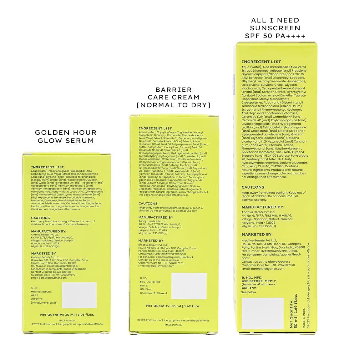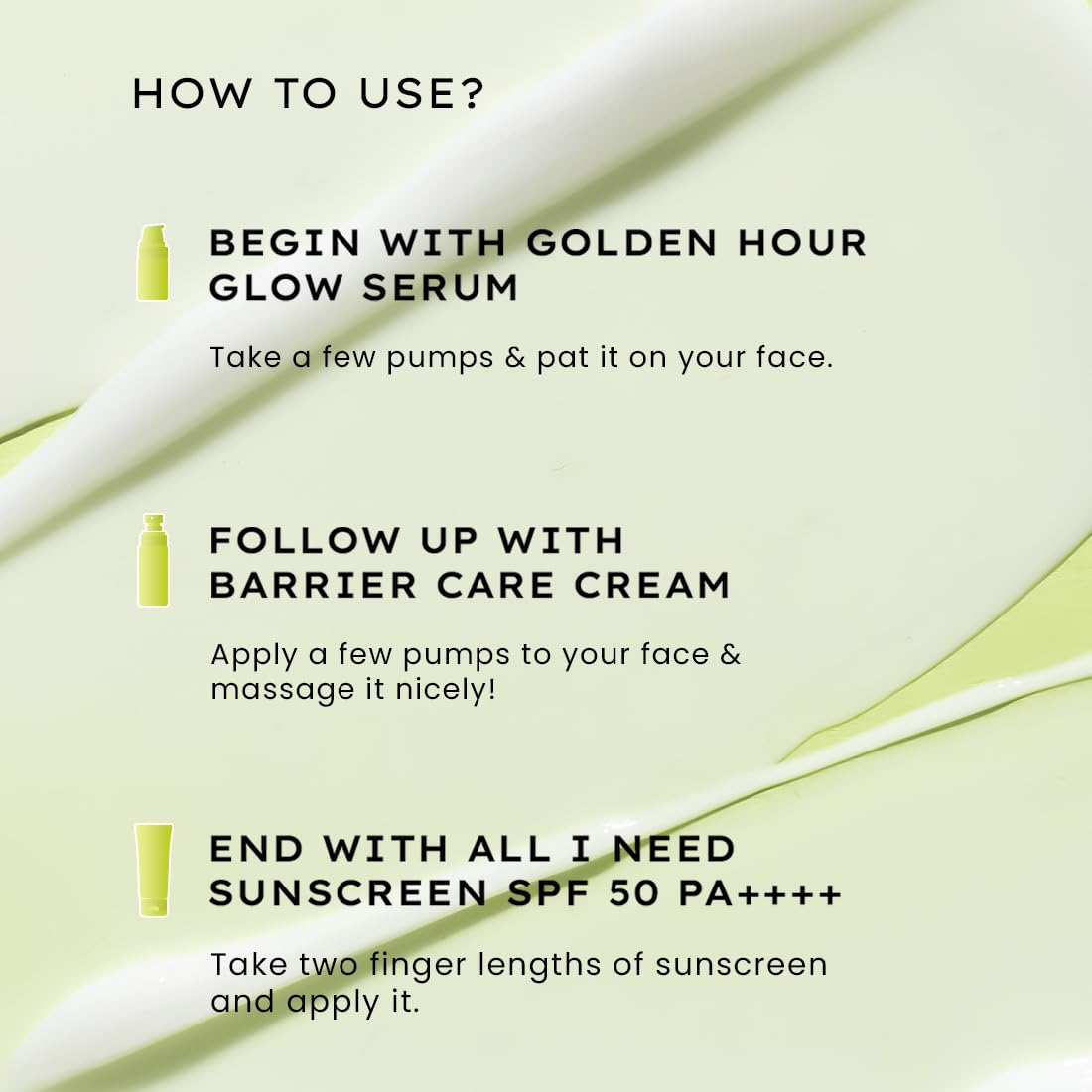 Searching for a perfect skincare routine for your dry skin? Look no further than our Daily Dry-Skin Care Bundle. This meticulously curated regimen is specifically designed to cater to the needs of dry skin providing a three-step routine as simple as GLOW UP - MOISTURIZE - PROTECT. Our Daily Dry-Skin Care Bundle comprises three essential products that will turn your dry skin into a soft and supple canvas: Begin your routine with our Golden Hour Glow Serum a lightweight Hydrating Serum which offers glowing skin in just two weeks. Packed with skin-loving ingredients like Alpha Arbutin Niacinamide Kakadu Plum Extracts Peptides and more it delivers intense hydration and nourishment - much needed for dry skin. Follow up with our very indulgent Barrier Care Face Cream for dry skin specially formulated to strengthen your skin's protective barrier with its super-hydrating formula. This cream not only provides deep hydration but also locks in moisture leaving your skin feeling hydrated moisturized & glowing skin. Wrap up your routine with our sun-shield the All I Need Sunscreen SPF 50 PA++++. Not only does it shield your skin from harmful UV rays & blue light but it also moisturizes your skin. It also works to reduce the appearance of sunspots thanks to its potent antioxidants. Our commitment to your well-being extends to the planet as well. Our Daily Dry-Skin Care Bundle is PETA Certified 100% Vegan Clinically Tested Dermatologically Tested and free from Parabens SLS and Alcohol. In a significant step towards sustainability we are proud to announce our zero plastic footprint achievement. We recycle more plastic than we consume aligning our efforts with our responsibility to the environment.
