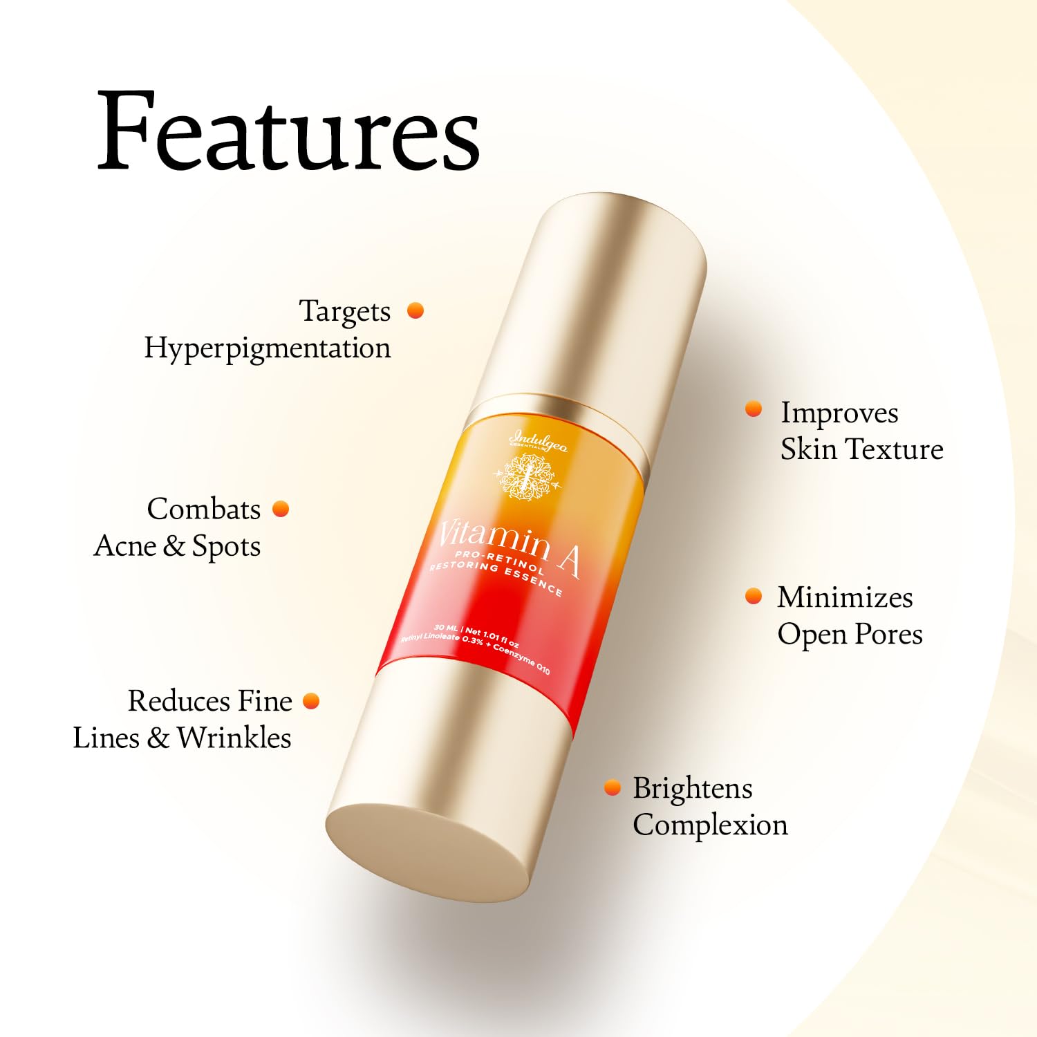 INDULGEO ESSENTIALS 0.3% Retinol Face Cream For Anti Aging For Beginners (30Ml)| Night Face Cream With Retinol & Q10 To Fine Lines & Wrinkles | Vitamin A Pro-Retinol Restoring Essence For Women & Men