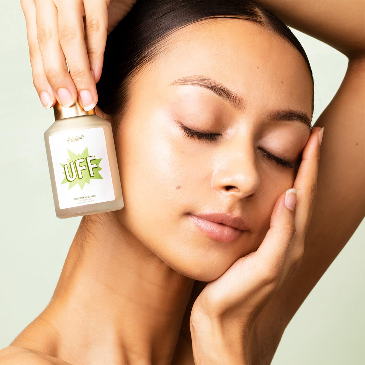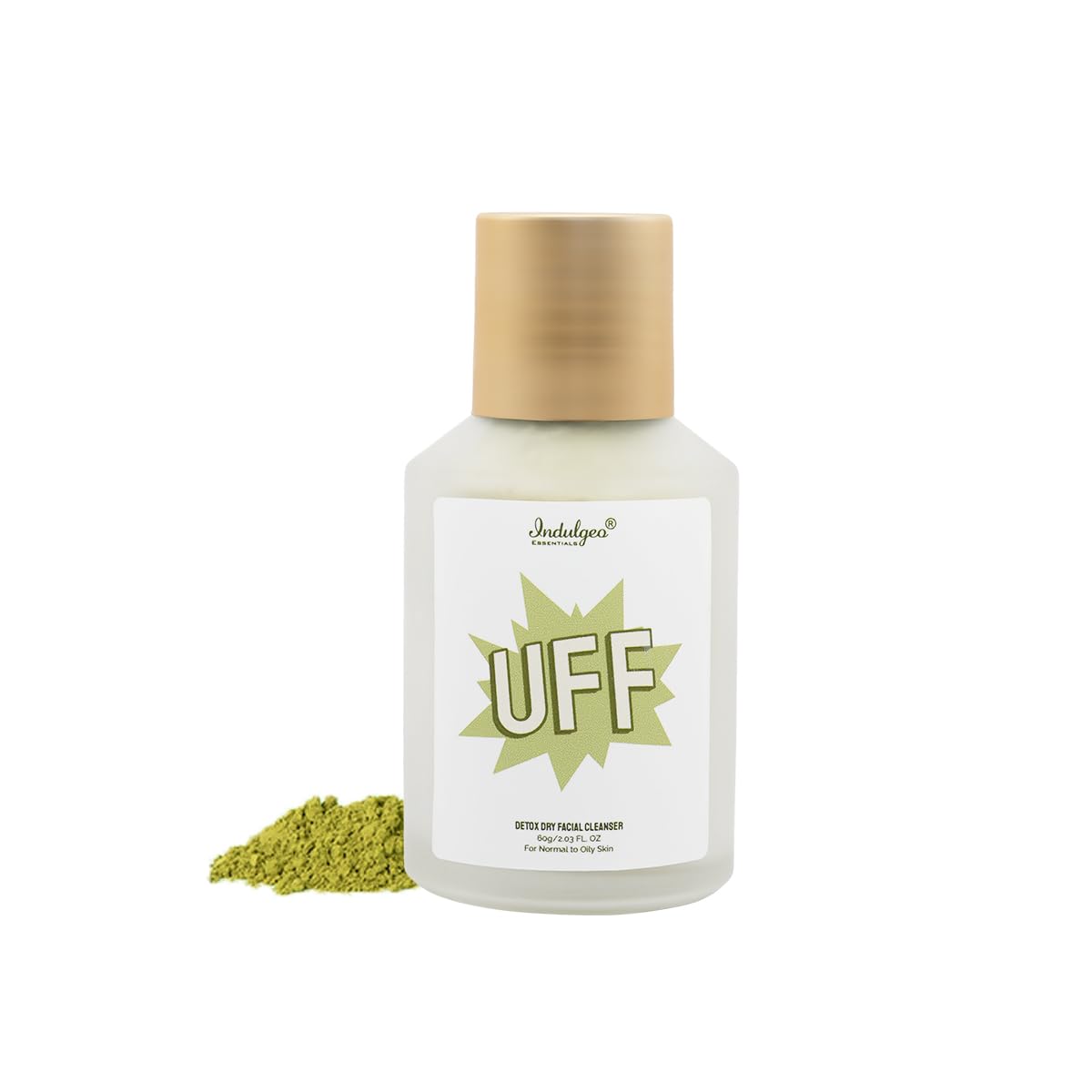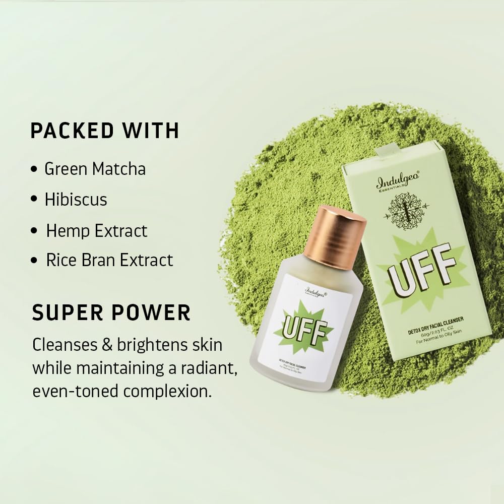 INDULGEO ESSENTIALS Uff Detox Dry Facial Cleanser | Helps in Deep Cleansing | Skin Brightening | pH Balancing | Non Oily - Non Foaming | Help to Treats Acne Help to Reduces Wrinkles & Fine lines - Made Up of Blue Matcha Hibiscus Saffron & Grapefruit - For Men & Women - 60gm