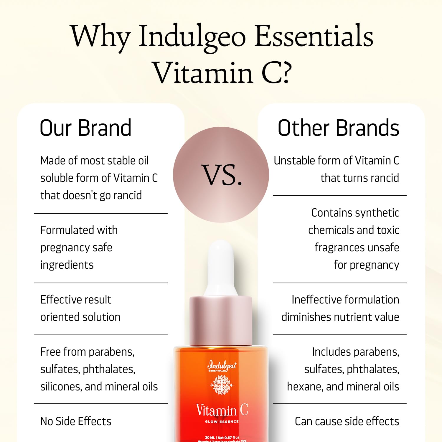 Indulgeo Essentials Vitamin C Glow Essence For Glowing Skin With Sugarcane Squalane 20ml | Reduces Dark Spots Fine Lines Wrinkles & Hyperpigmentation | Vitamin C Face Serum For Men And Women