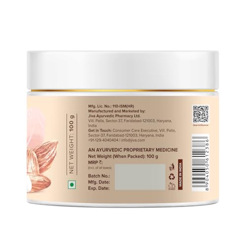 Jiva Almond Cream is a rejuvenating formula to keep your skin moisturised and nourished. Made with pure herbs extract this cream is suitable for usage for all skin types and is paraben and silicone-free. It contains the goodness of herbs and natural actives that moisturises your skin from deep within like Almond Chironji and Jaiphal. Together this herbal combination provides natural protection against dry and cracked skin. It nourishes and moistens the skin and makes it soft and smooth. Active ingredients go deep into the pores and remove impurities open up channels for better circulation and keep your skin healthy. Active ingredients help remove under-eye marks giving you a bright young look.