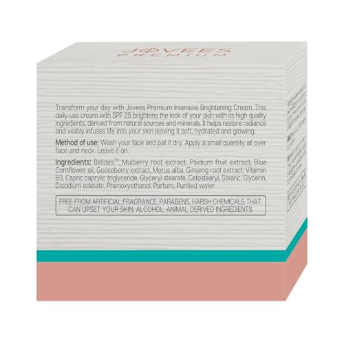 Transform your day with jovees premium skin brightening cream. This daily use cream with SPF 25 brightens the look of your skin with its high quality ingredients derived from natural sources and miner.
