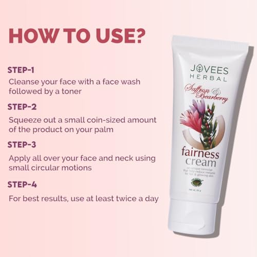 The amount of melanin the skins pigmenting agent in the body determines the color of the skin. A natural skin whitening formulae from Jovees developed scientifically contains skin lighteners derived from natural sources that help to the production of melanin provide deep down moisturising clarifies the skin gently even out discoloration brings glow to it. It shall also protect skin from harmful effects of UVA and UVB rays.