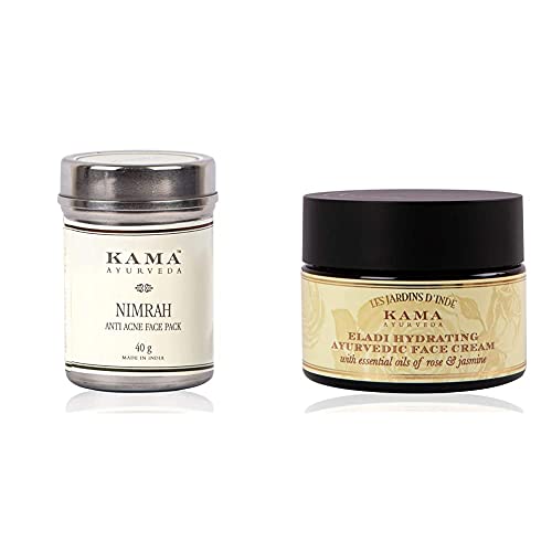 Kama Ayurveda Nimrah Anti Acne Face Pack & Kama Ayurveda Eladi Hydrating Ayurvedic Face Cream with Pure Essential Oils of Rose and Jasmine, 50g